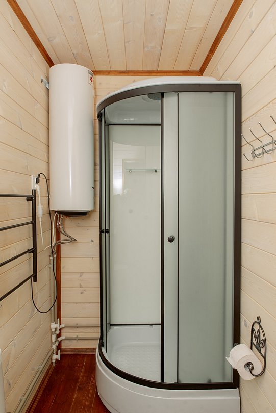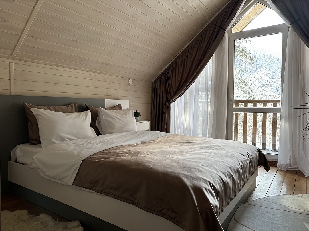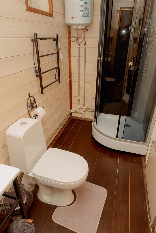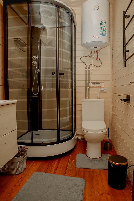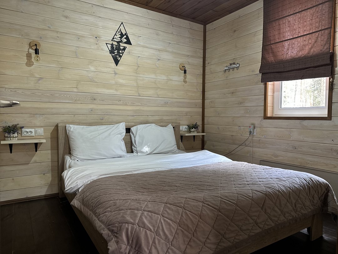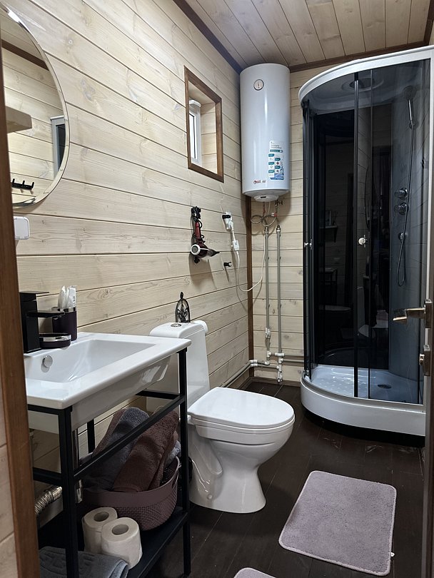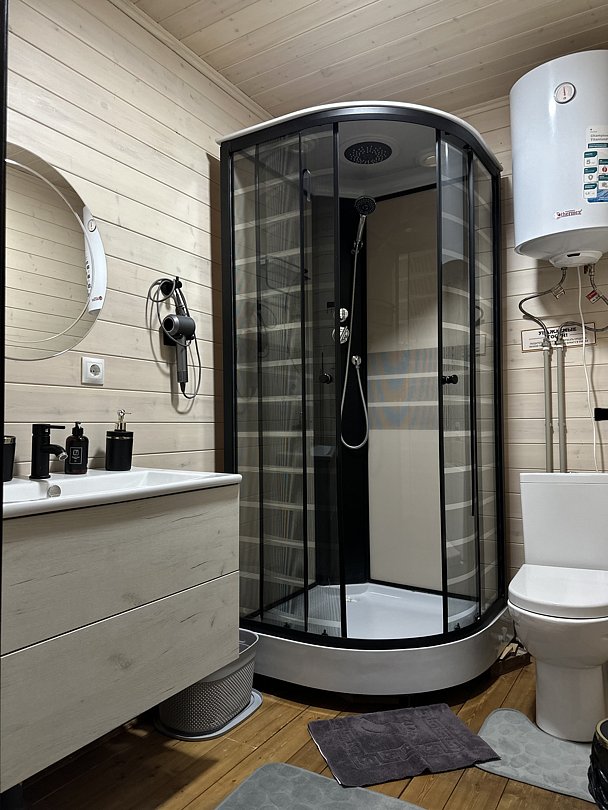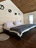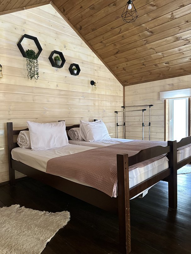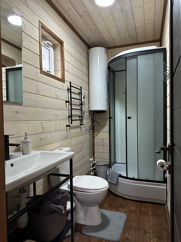 На втором этаже расположены две уютные спальни, каждая из которых наполняет атмосферу индивидуальностью и стилем. Ванная комната оборудована всем необходимым, обеспечивая комфорт и расслабление после активного дня на свежем воздухе.