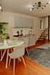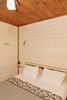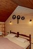 Спальные места: отдельная спальня с двуспальной кроватью на первом этаже, двуспальная кровать (по запросу можно раздвинуть на две односпальные) на втором уровне, односпальный диван на первом этаже в кухне-гостиной.