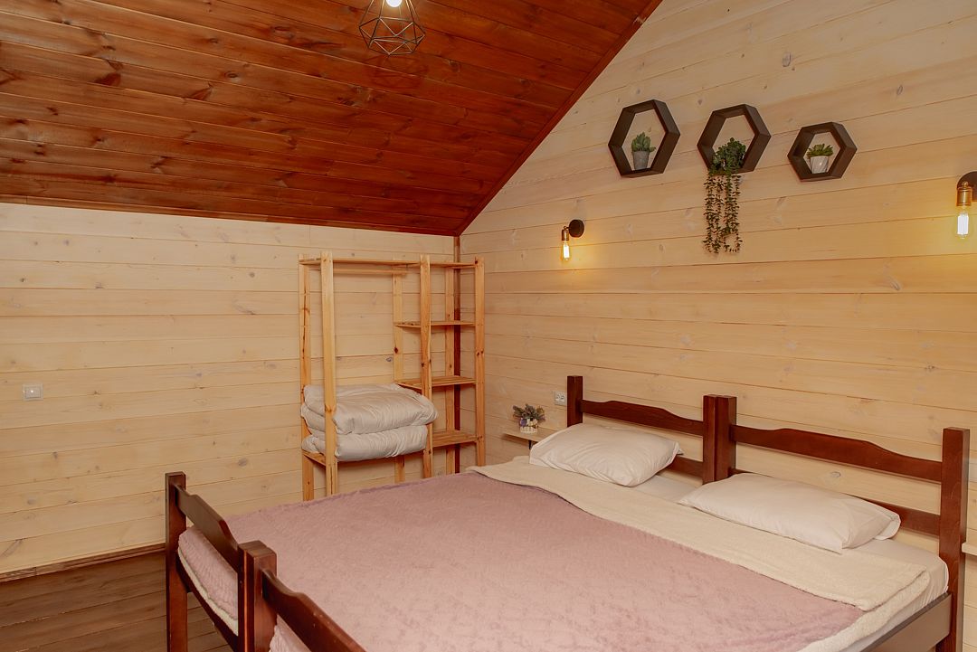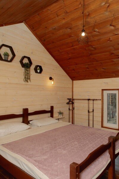 На втором этаже находится большая двуспальная кровать (при необходимости можно раздвинуть) с ортопедическим матрасом и прекрасным видом на лес! Возле каждого дома имеется мангальная зона со всем необходимым инвентарём.