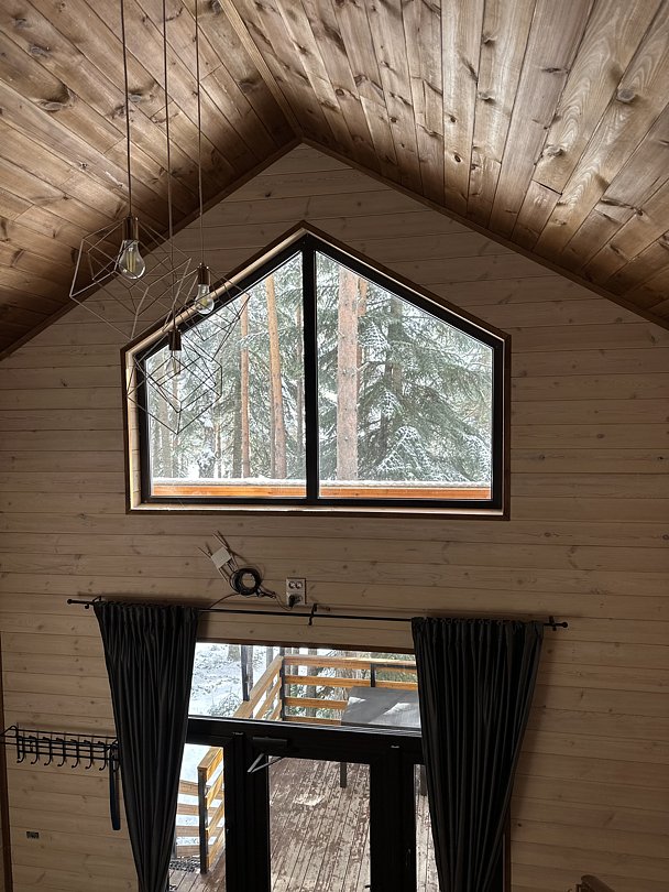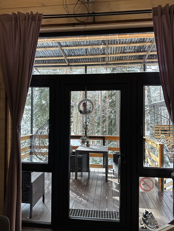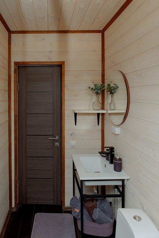 Снаружи дом восхищает натуральными, экологичными материалами, которые гармонично вписываются в окружающий ландшафт. Просторная терраса — идеальное место для наслаждения удивительными закатами, ароматами костра и умиротворением природы.