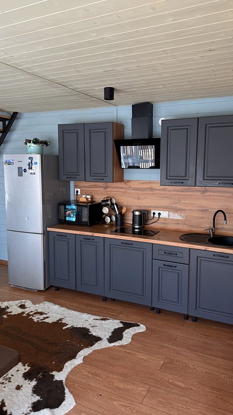 В вашем распоряжении: кухонный гарнитур, электрический чайник и посуда. На этаже: холодильник, микроволновая печь и плита.