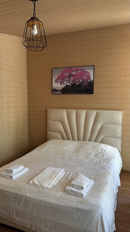 Одна двуспальная кровать, одна диван-кроватьВ коттедже