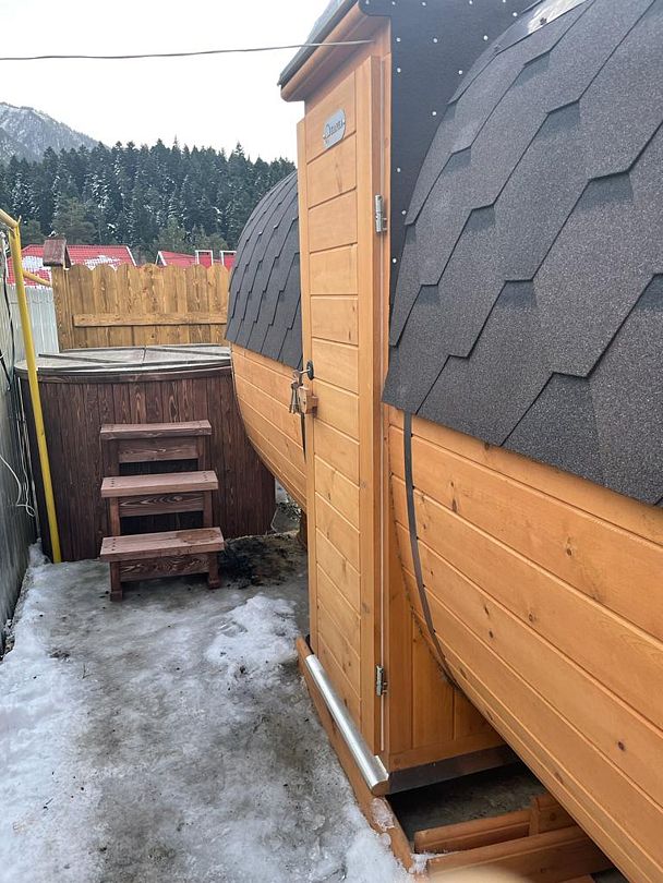 Баня на дровахВ зимнее время годы мы предлагаем нашим гостям воспользоваться баней на дровах с купелью на территории гостевого дома.
