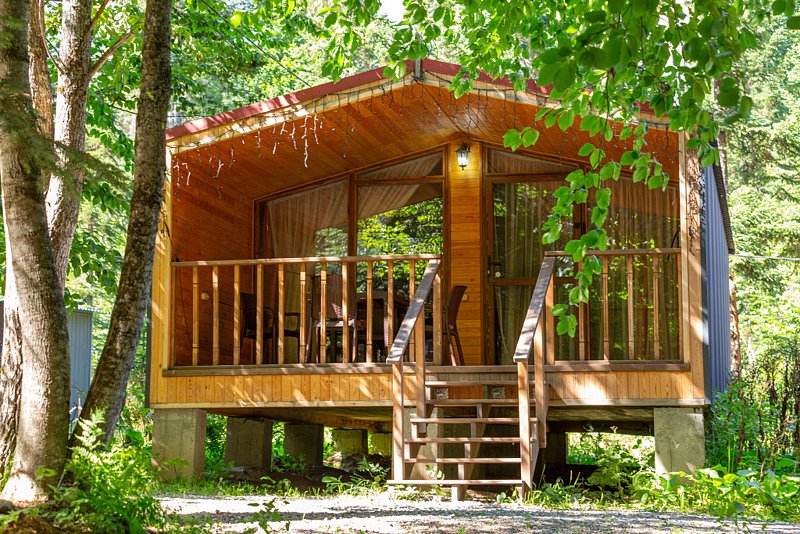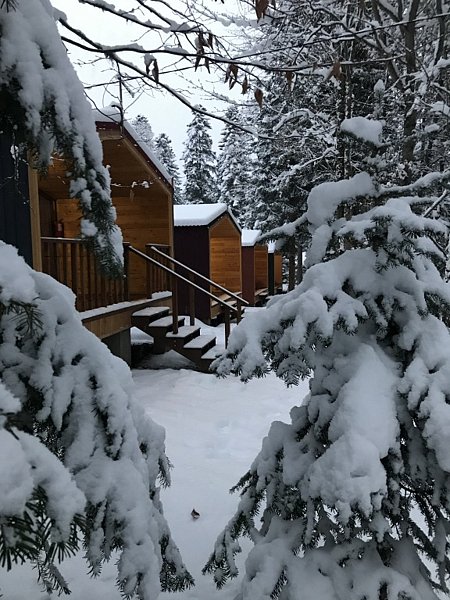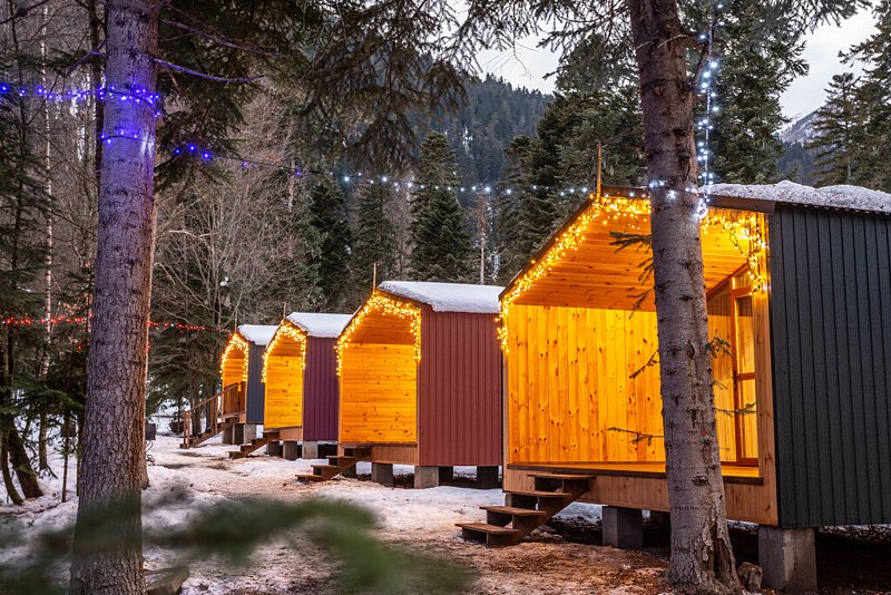 В живописном хвойном лесу расположились уютные домики, оснащённые всем необходимым для комфортного проживания.