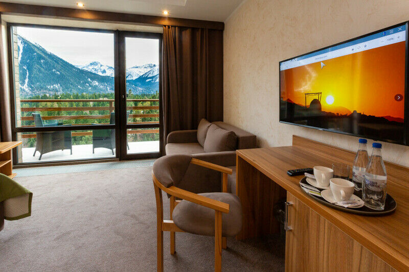При отеле работает контрастный бассейн и финская парная. Приятным бонусом будет SKI-ROOM для горнолыжного снаряжения. Гости также смогут отдохнуть и насладиться горными пейзажами, сидя на террасе. Ближайший железнодорожный вокзал находится на расстоянии 104 км.