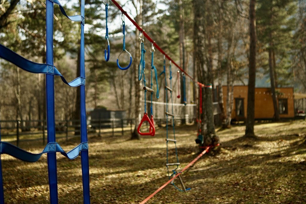 На территории есть сезонное кафе, две костровые зоны, 15-метровая полоса препятствий в качестве развлечения для детей. Работает бесплатный Wi-Fi. Есть парковка рядом.