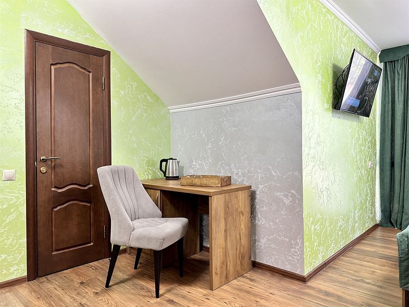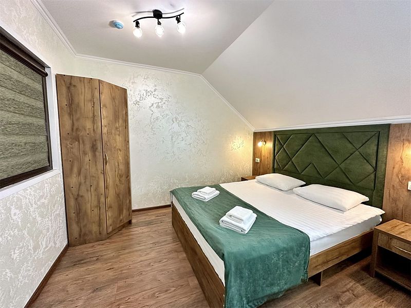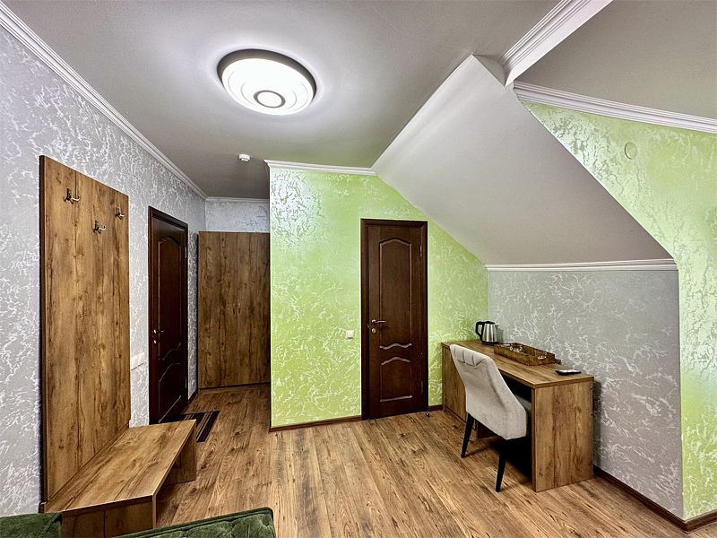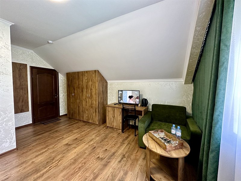 Уютный 1-комнатный номер "Стандарт на мансарде" рассчитан на проживание 2 или 3 Гостей.