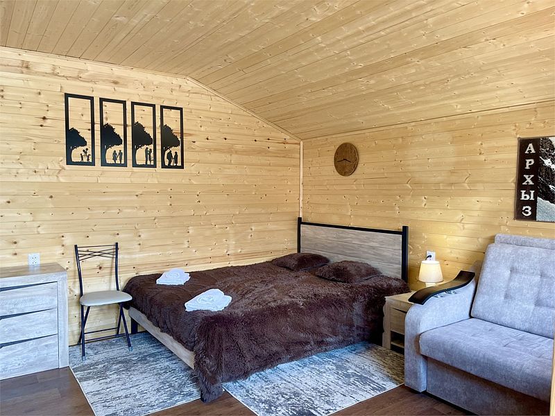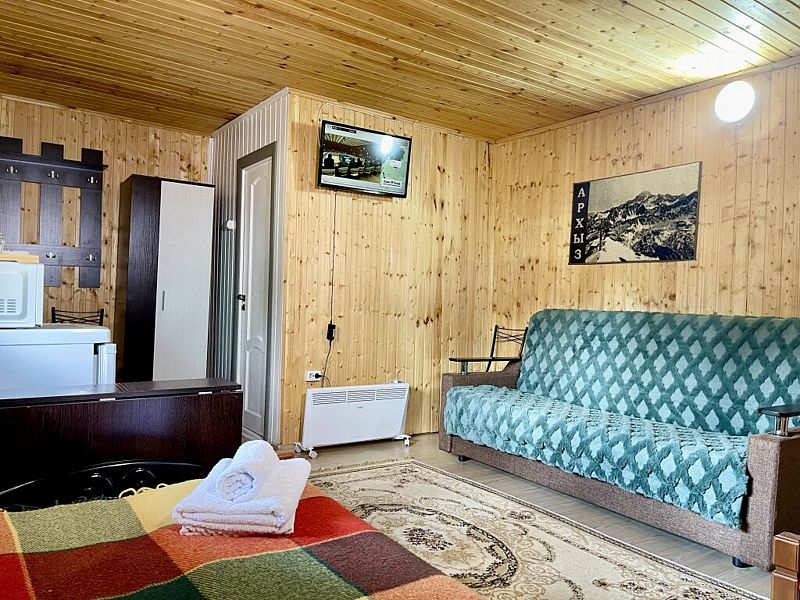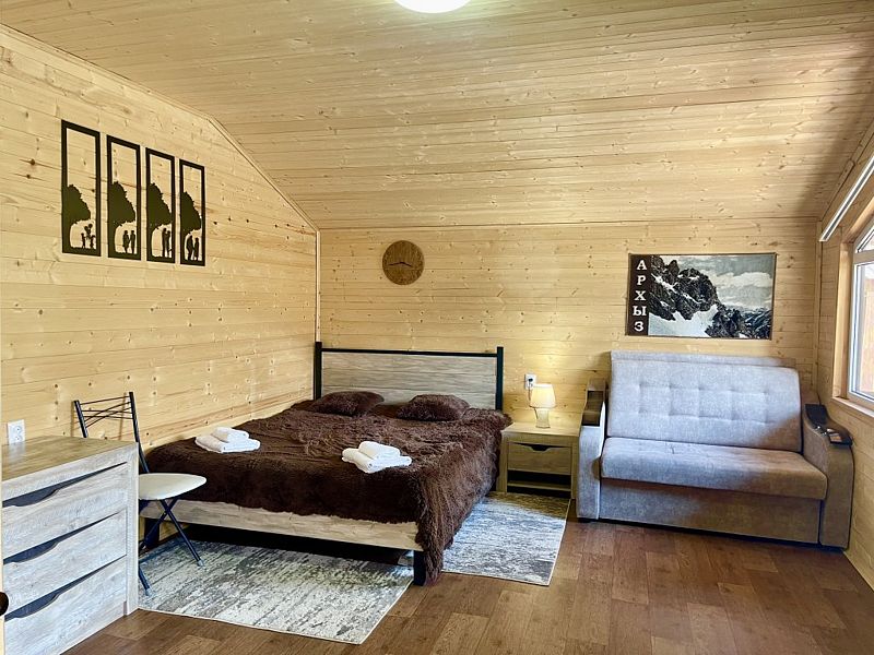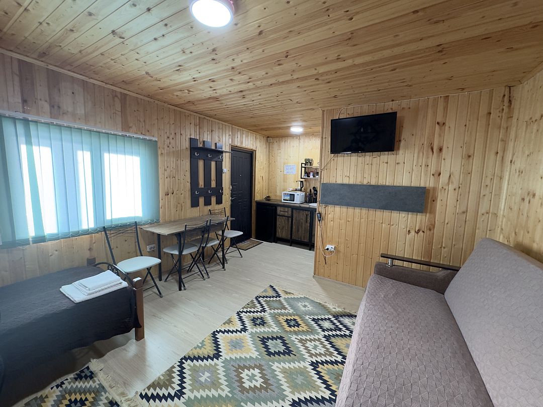 Уютный 1-комнатный эко-дом "Студия" рассчитан на проживание 3 гостей.
