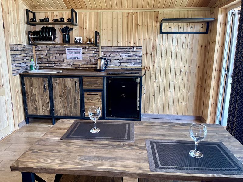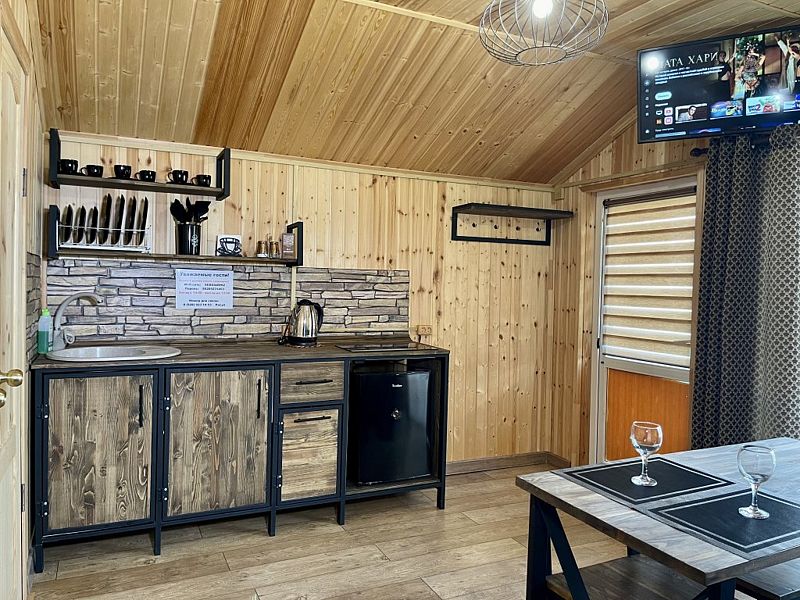 Уютный 2-комнатный эко-дом с кухней "Прованс" рассчитан на проживание 3 гостей.