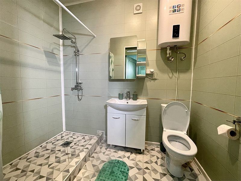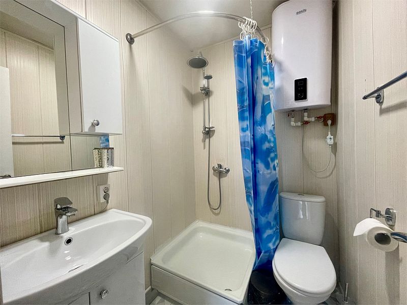 Санузел: душ, раковина, туалет, базовые гигиенические средства: мыло, шампунь, гель для душа.