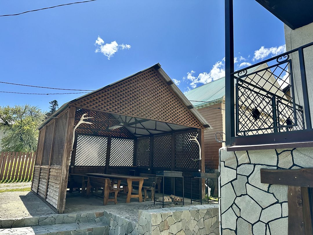 Дом имеет беседку с мангалом.