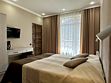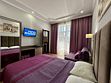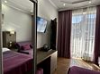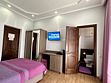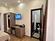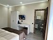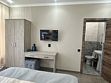 Комната оборудована всем необходимым. Имеется двуспальная кровать, диван, в комнате своя ванная комната