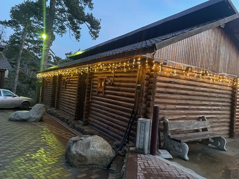 На территории гостевого дома также есть кафе, баня, прокат и кухня общего пользования.