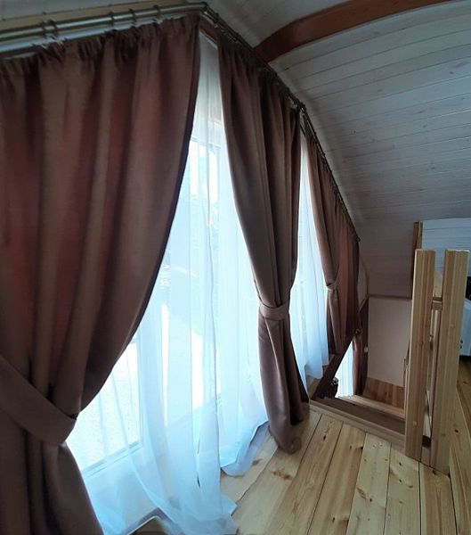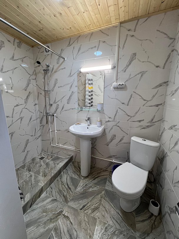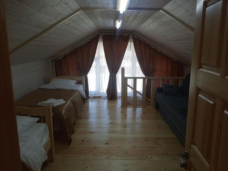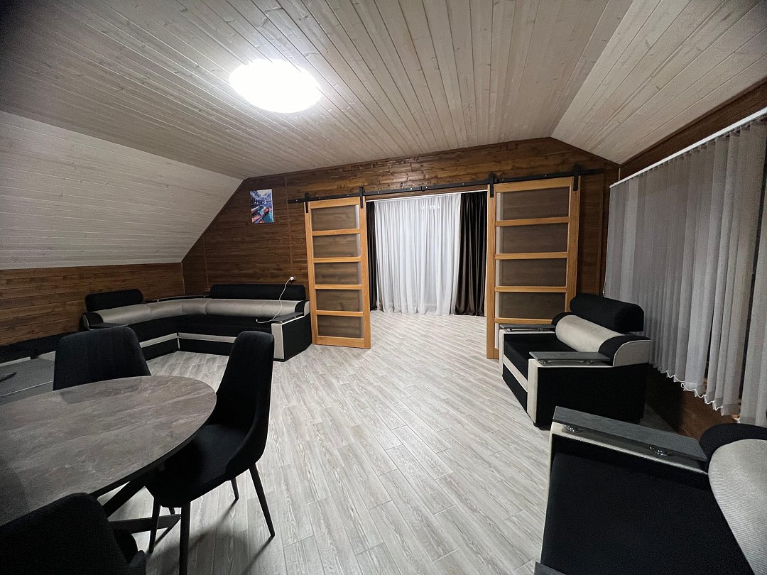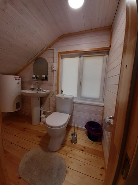 Совмещенный санузел с душем, отдельный туалет на 2 этаже, фен, полотенца, сушилка для белья, водонагреватель. В номере кровать, ортопедический матрас, мягкая мебель, диван, ТВ, мини-холодильник, Wi-Fi, чайник, чашки, питьевая вода. Терраса с обеденным столиком, рядом ручей, прекрасный вид на горы.