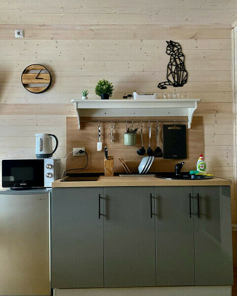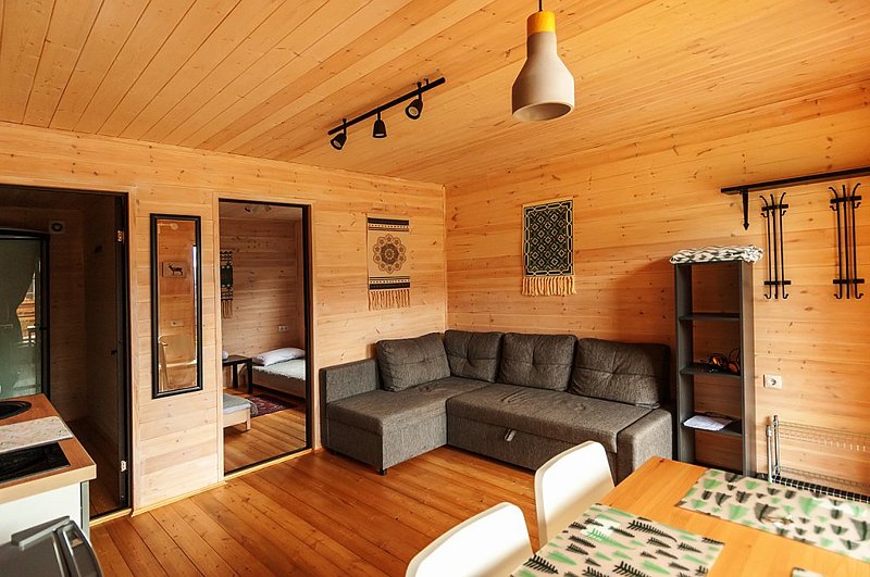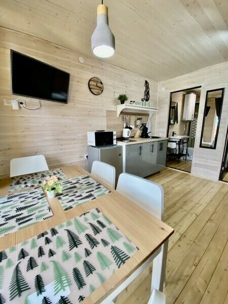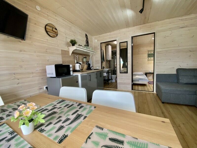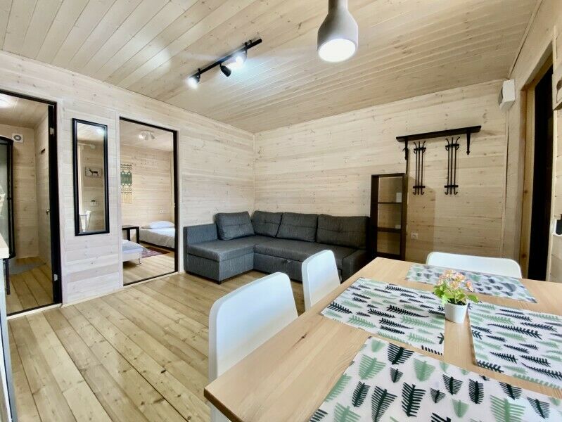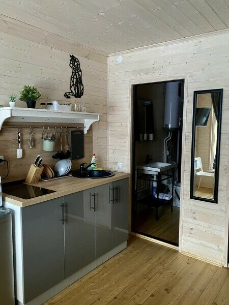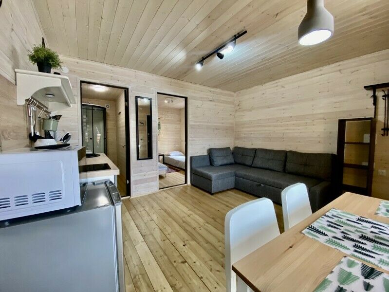 Комфортный домик, идеально подходит для семьи, на 2 взрослых, 2 ребенка, 2 -1спалки, раскладной диван, кухня, чайник, холодильник. Микроволновая печь, сан узел, душевая