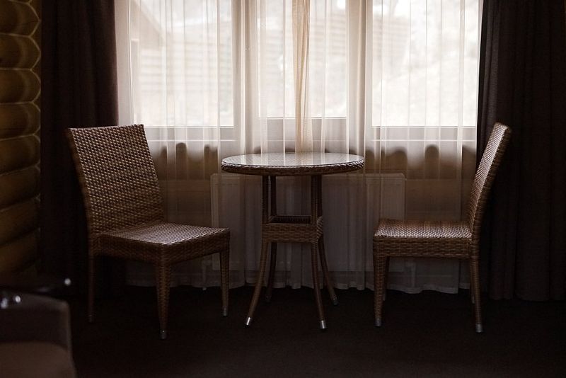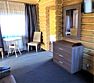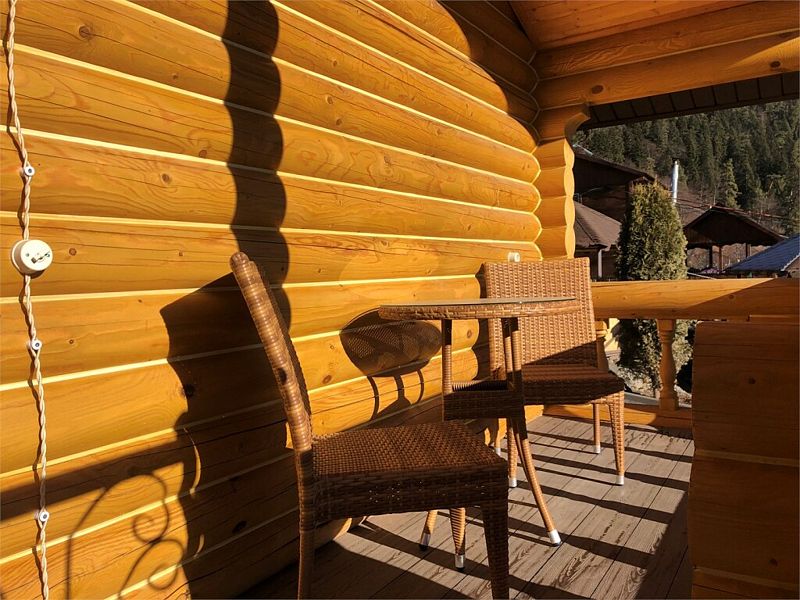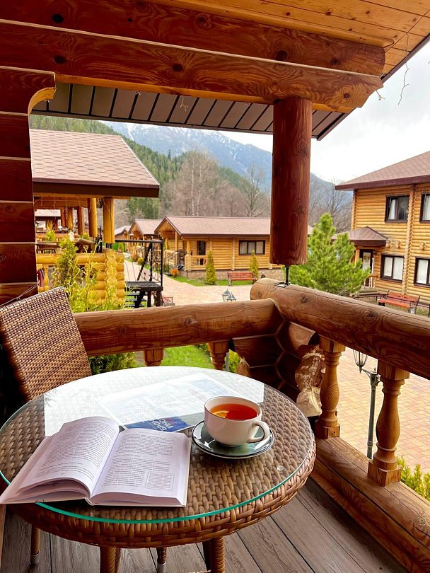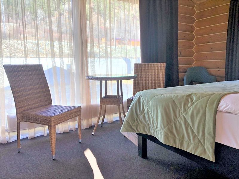 Шале (однокомнатный) с панорамным окном в спальне, собственная ванная комната, терраса с видом на горы и мебелью из ротанга. Максимальное количество размещенных гостей: 3 человека. Шале оснащен всем необходимым для комфортного пребывания.