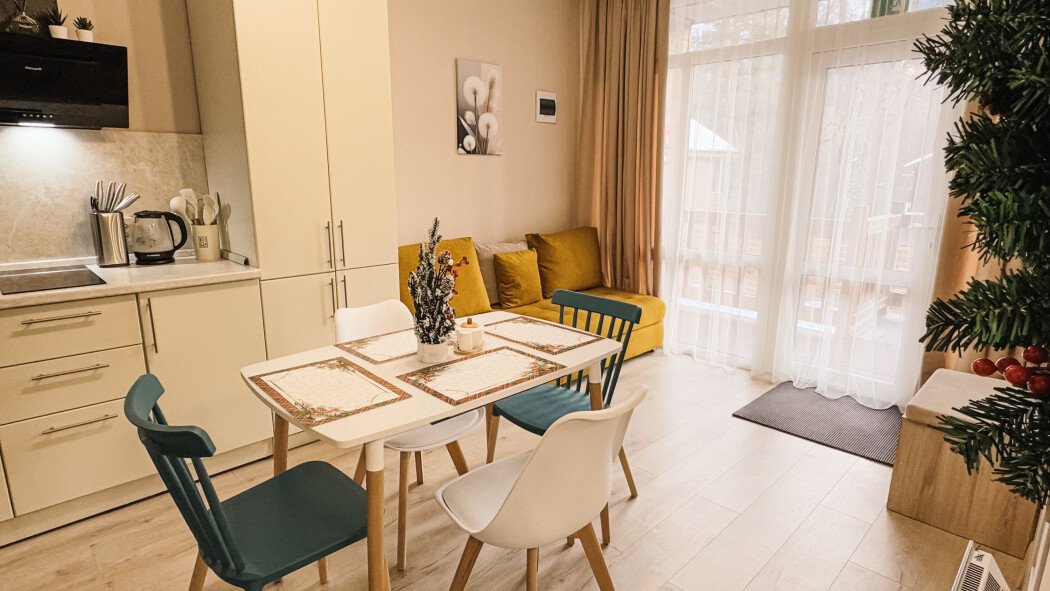 - 4 минуты до премиального Spa-комплекса с чанами, баней и парением.