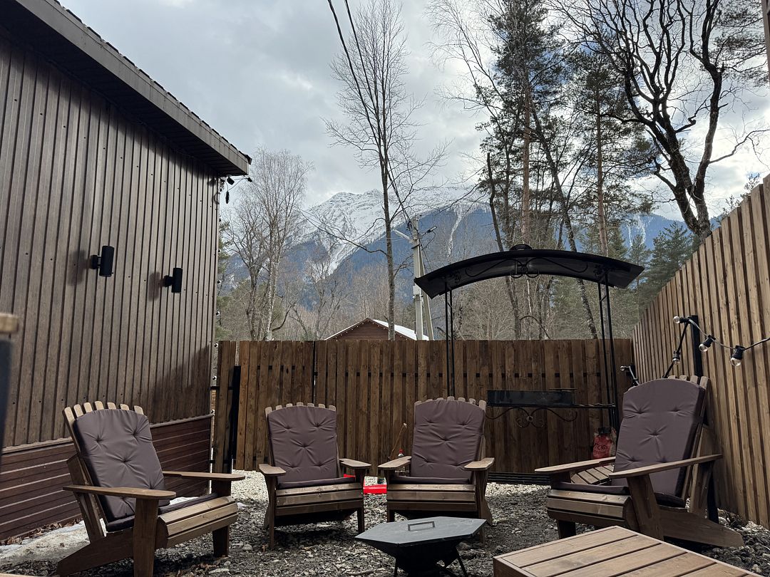 Каждый дом стоит на собственной огороженной территории с парковочным местом и уютной террасой, оборудованной садовой мебелью и мангалом для приготовления ароматных блюд на открытом воздухе. Из панорамных окон открываются захватывающие виды на лесные массивы и величественные горные вершины.