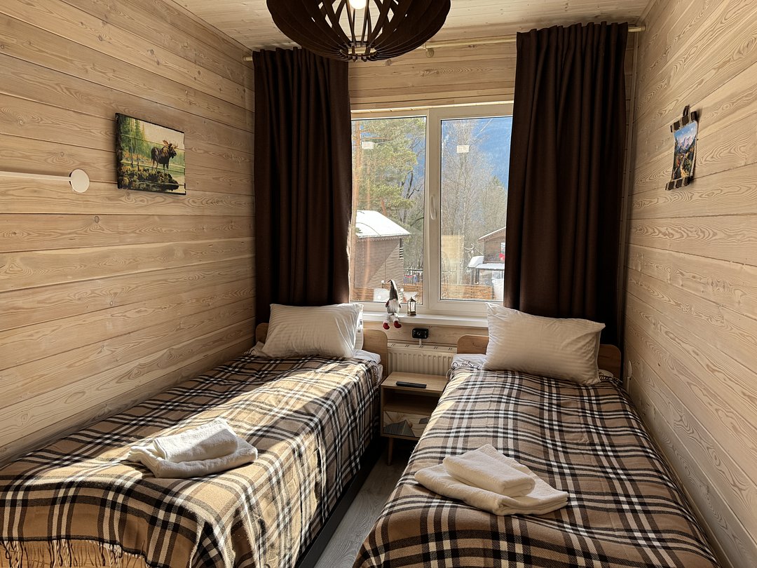 Для вашего комфорта предусмотрено все необходимое: электрические конвекторы поддерживают оптимальную температуру, свежее постельное белье и мягкие махровые тапочки ждут вас после активного дня. В ванной комнате вы найдете пушистые полотенца и базовые гигиенические принадлежности.