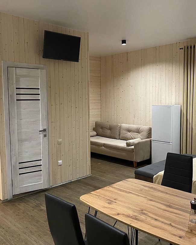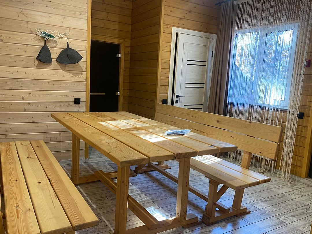 Вилла с четырьмя спальнями. В стоимость проживания пользование баней не входит (оплачивается отдельно).