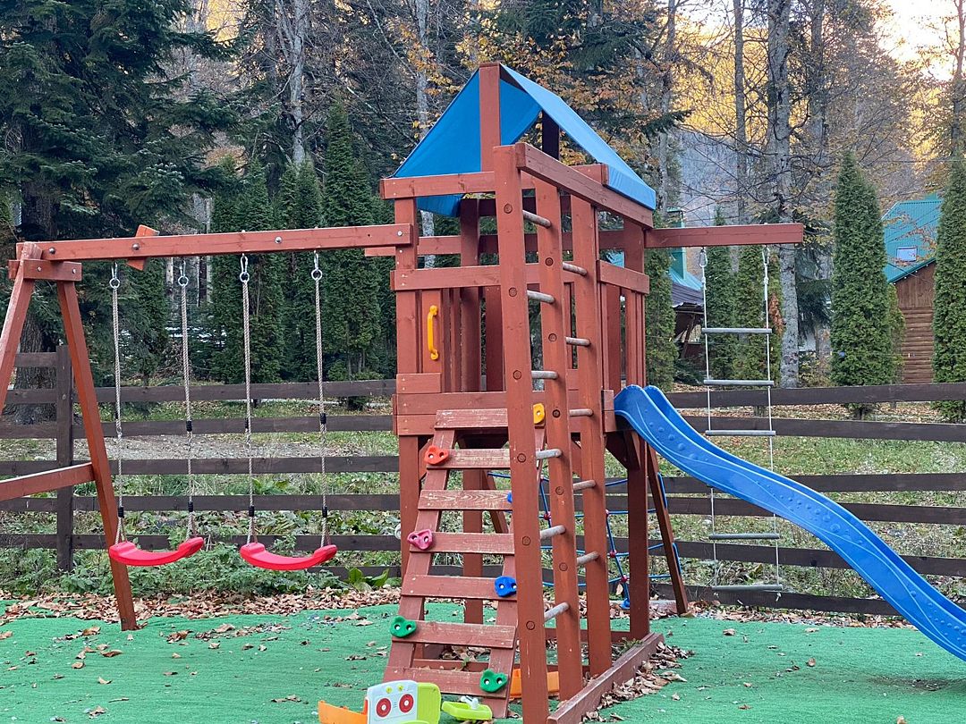 Зеленая территория гостевого дома создает атмосферу уединения и покоя. Здесь расположены две комфортабельные бани — одна рассчитана на шесть, другая на восемь человек. Для любителей отдыха на свежем воздухе оборудованы мангальные зоны, а гости виллы могут наслаждаться трапезой в собственной беседке. Маленьких путешественников ждет специально оборудованная детская площадка.