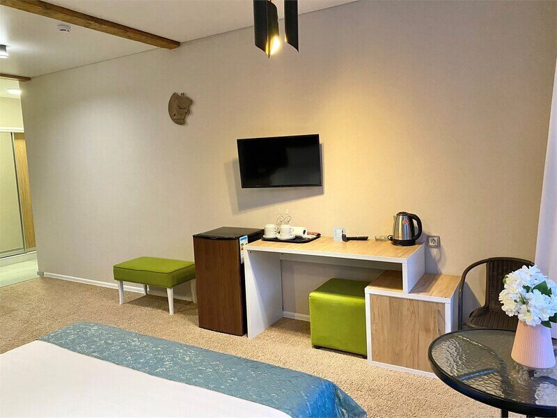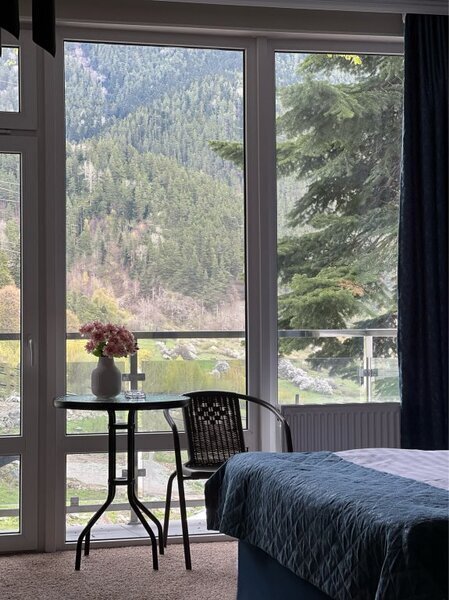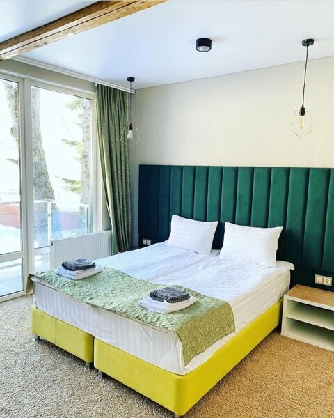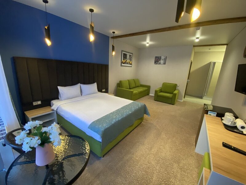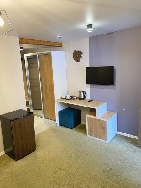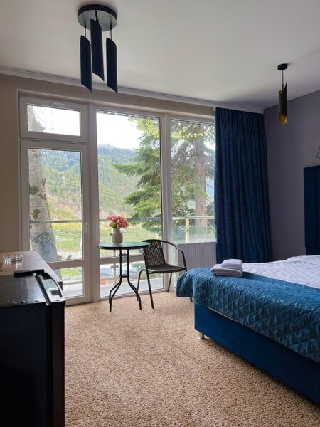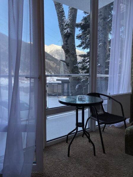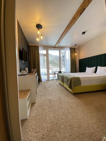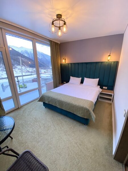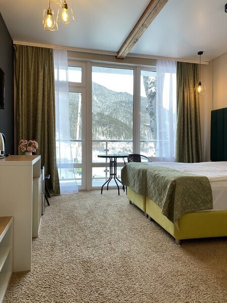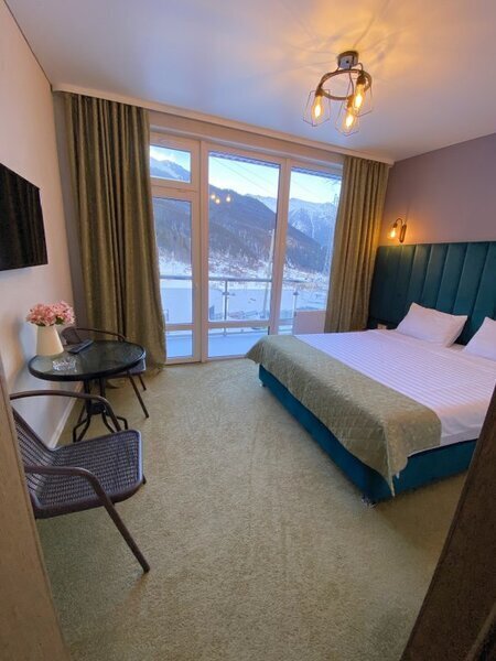 янв. 2023 г.Горные лыжи в АрхызеОтдыхали с 4 по 7 января 2023 семейная пара с двумя подростками. Отель в самом конце улицы, высоко над всем Архызом, так что шума от проезжающих машин и гуляющих людей нет, но пешком тоже не находишься. Вместительный двухкомнатный номер с современным ремонтом. В номере 2 телевизора, чайник, чашки , холодильник. Большая ванная комната с душевой кабиной, туалетные принадлежности, полотенца. Без проблем с горячей водой. Полы в прихожей и ванной с подогревом, в комнатах ковролин. Панорамные окна, балкон. В номере тепло, чисто и уютно. Отдельная кухня со всей необходимой посудой и оборудованием. Если лень готовить, то можно вкусно покушать в отеле Горная Лаванда который находится на 200 метров ниже. На территории парковка, баня, 2 беседки, мангалы. Отдельная комната с сушилкой для обуви и там же можно хранить лыжи. Субъективно из недостатков: планировка номера - пенал, одна комната проходная и не имеет своего окна, поэтому для вентиляции приходится спать с открытой дверью в "спальню". Проход на кухню через улицу - нужно одевать одежду и уличную обувь. Но в целом впечатления самые положительные.