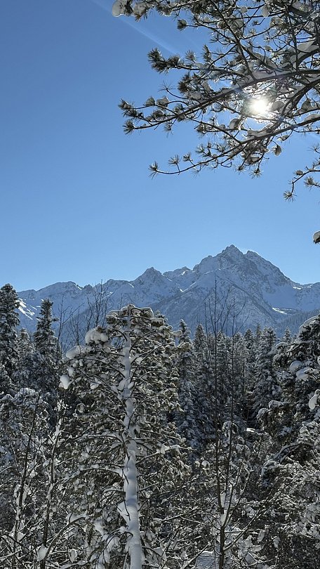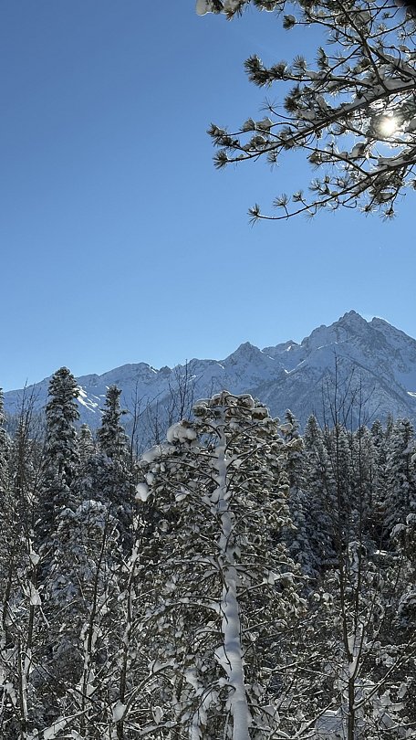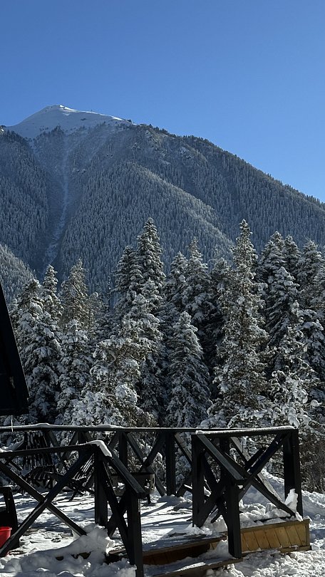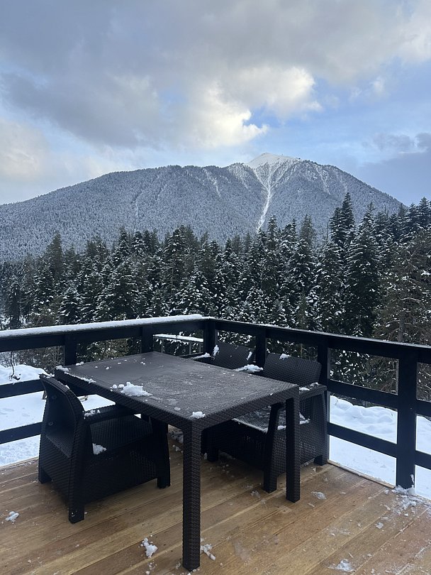 Афрейм с видом на хвойный лес и горы