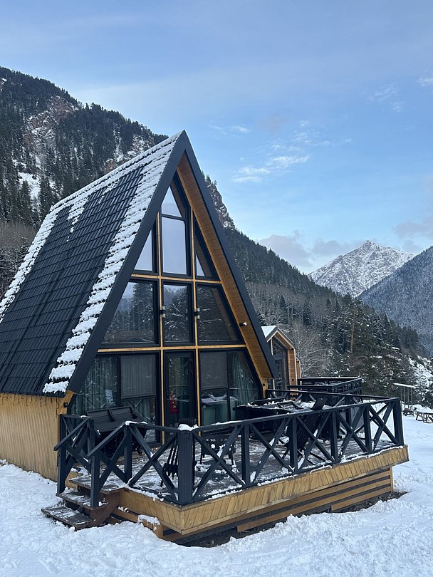 База отдыха «Исток», расположенная между с. Архызом и п. Романтик, рядом с Софийской поляной, предлагает вам уютные A-frame | Barnhouse с видом на горы, хвойный лес и реку, с размещением до 5 человек.
