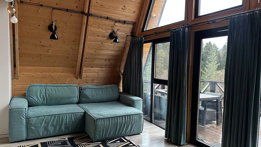 A-frame с видом на хвойный лес и горы до 4 человек:
