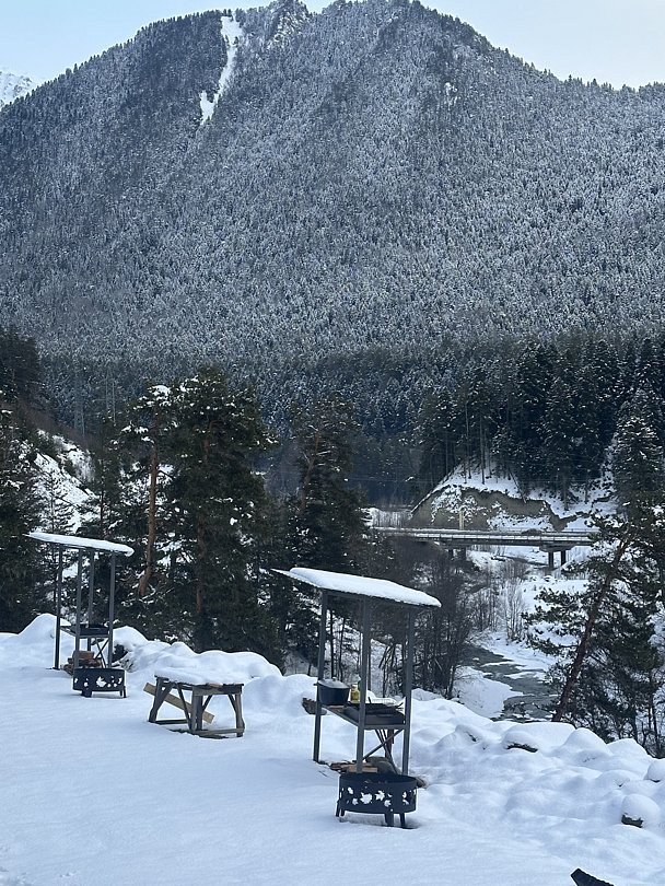 Кроме того, для любителей кулинарных экспериментов созданы мангальные зоны, где можно приготовить ароматные блюда на свежем воздухе и наслаждаться атмосферой дружеского общения на природе. Рядом с базой протекает горная река, добавляющая особое очарование этому уголку природы и приглашая гостей насладиться активным отдыхом на свежем воздухе.