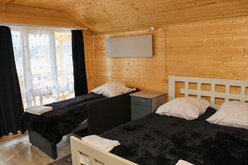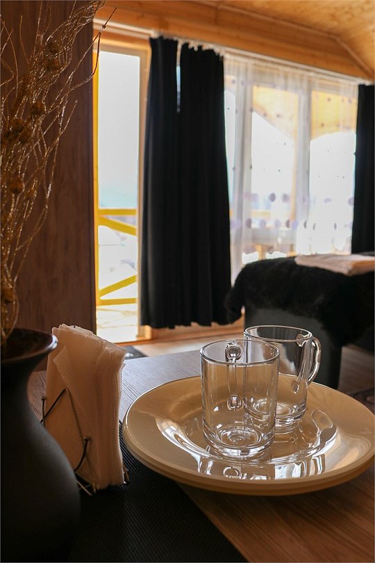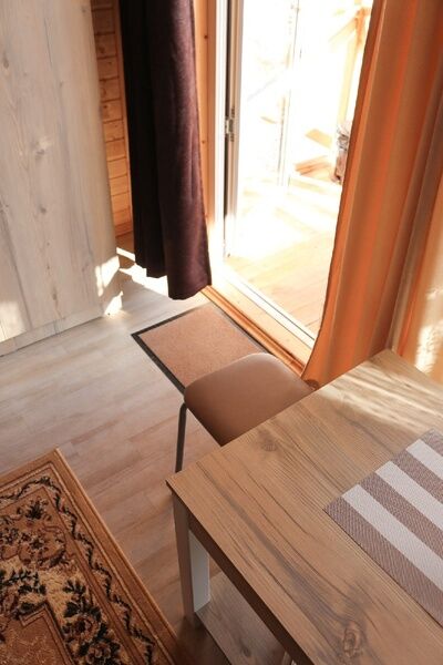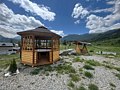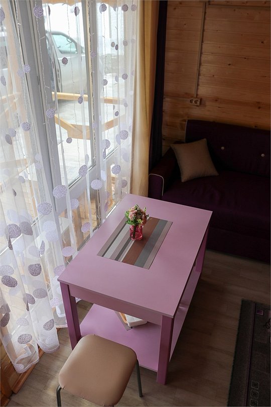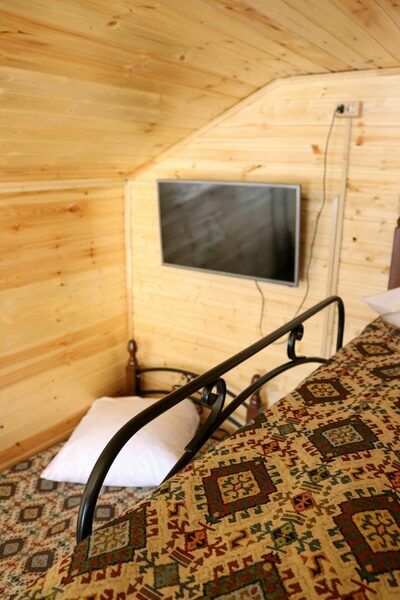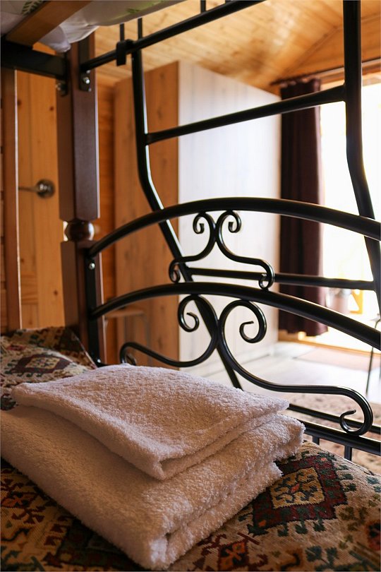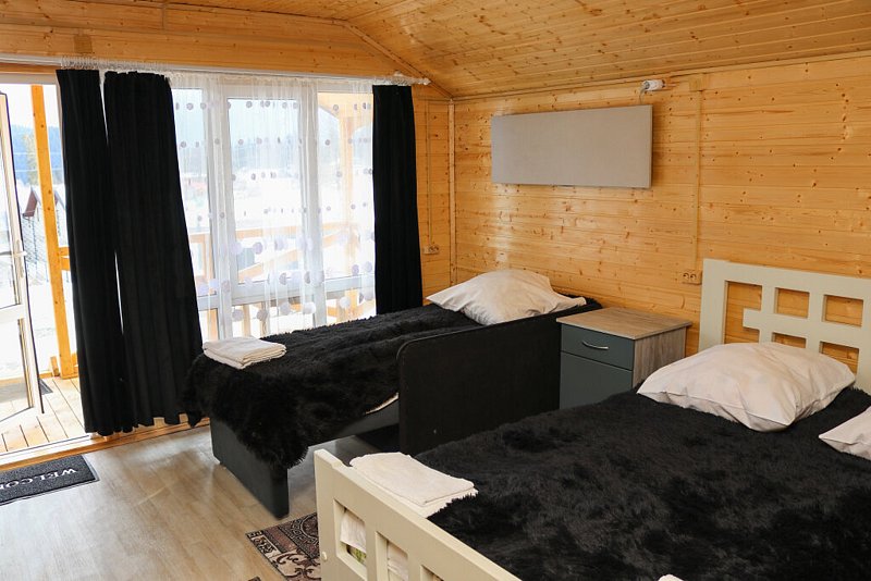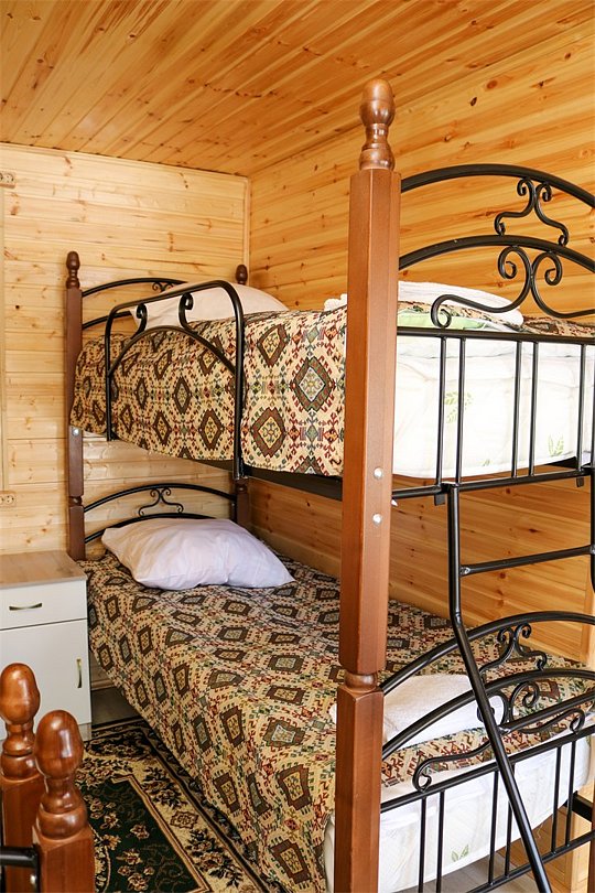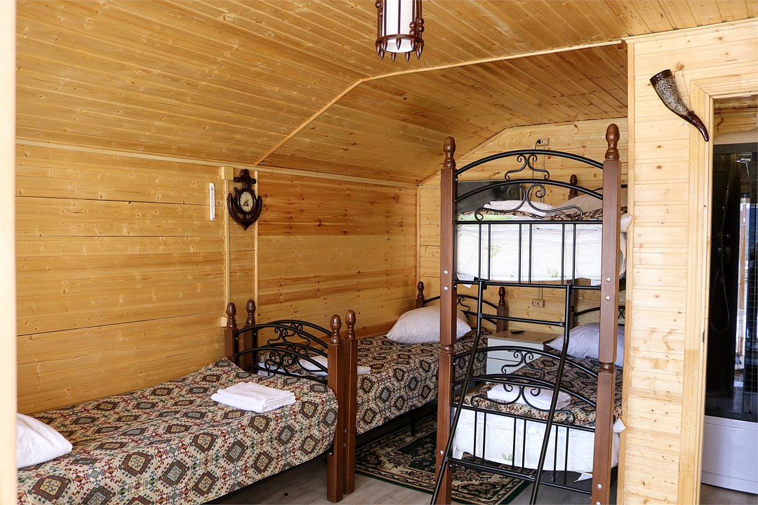 - комфортные условия: в каждом домике есть собственный санузел с душем, индивидуальная система обогрева, терраса с прекрасным видом на горы, а также вся необходимая бытовая техника — телевизор, электрочайник, фен, мини-холодильник, микроволновая печь;