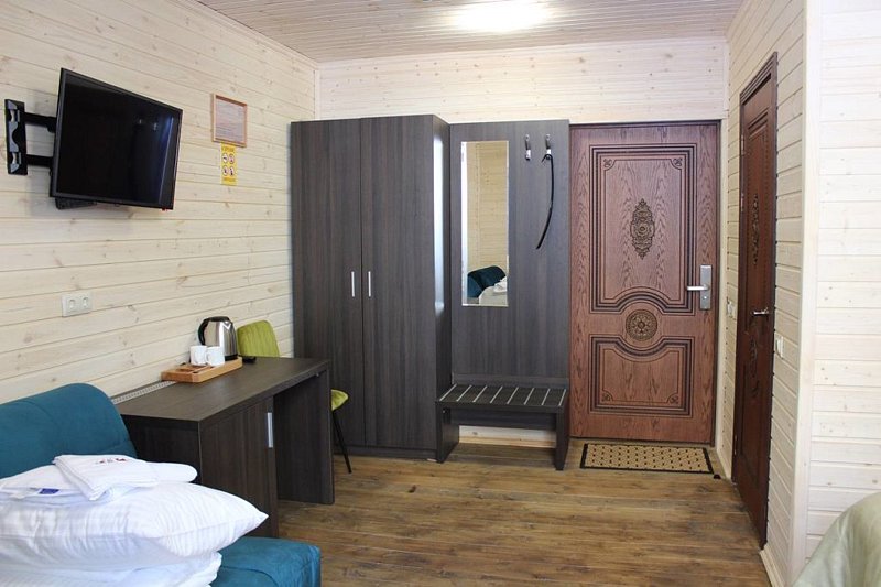 Всего на территории 30 комфортабельных номеров с проживанием в гостинице, коттеджах и уютных домиках. Номера оборудованы всем необходимым для комфортного пребывания.