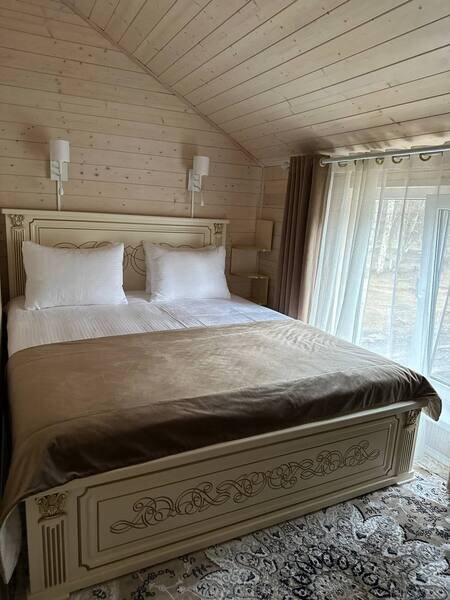 На территории комплекса оборудована парковка, мангальная зона, площадка для пикника и баня.