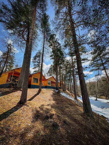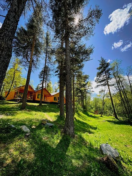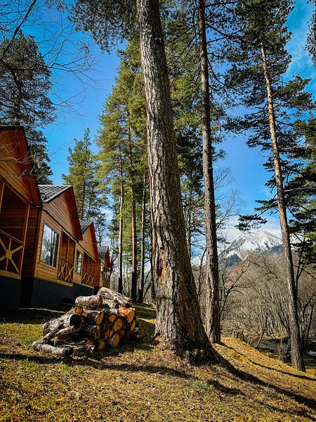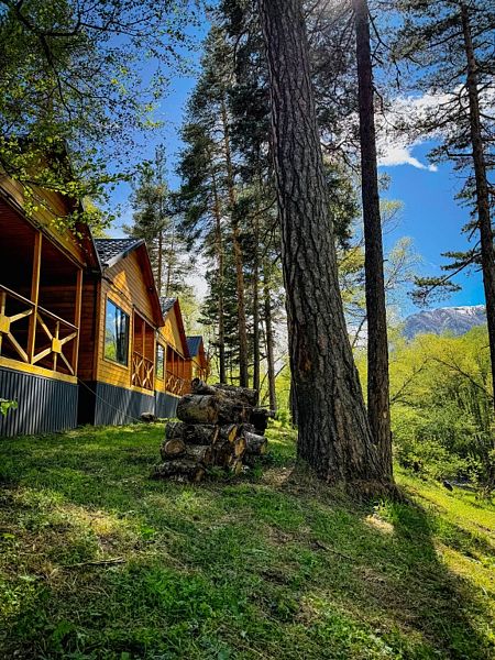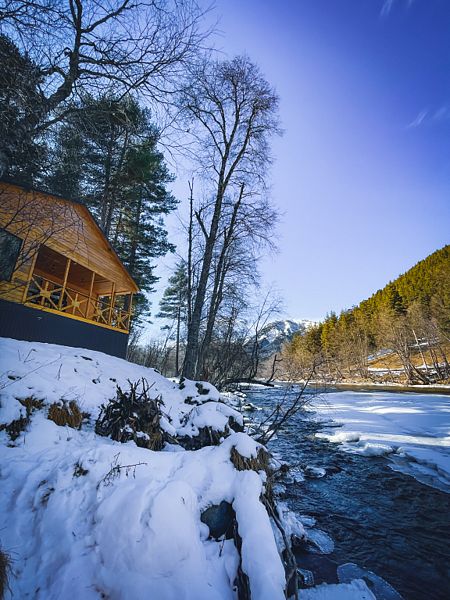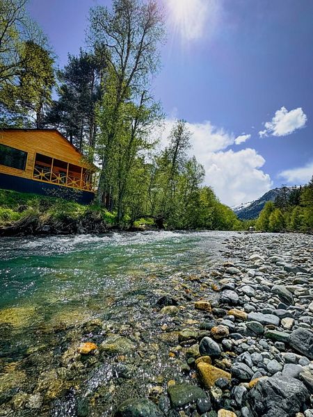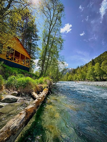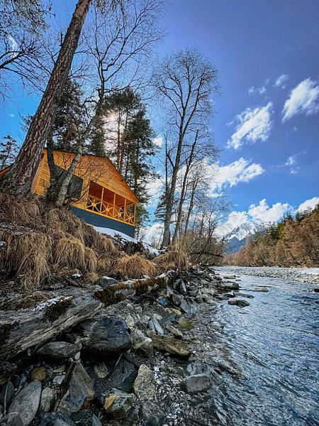 Расположенное на Софийской поляне, на берегу горной реки Псыш, шале находится в нескольких километрах от поселка Архыз и в 5 км от горнолыжного курорта «Романтик».