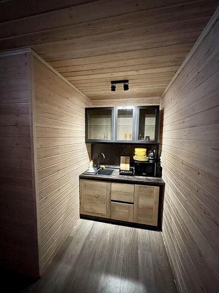 2 и 3-комнатные дома оборудованы встроенной кухней с набором необходимых приборов и посуды.