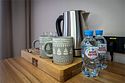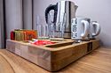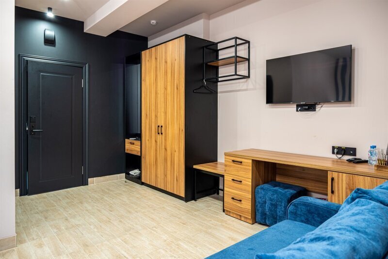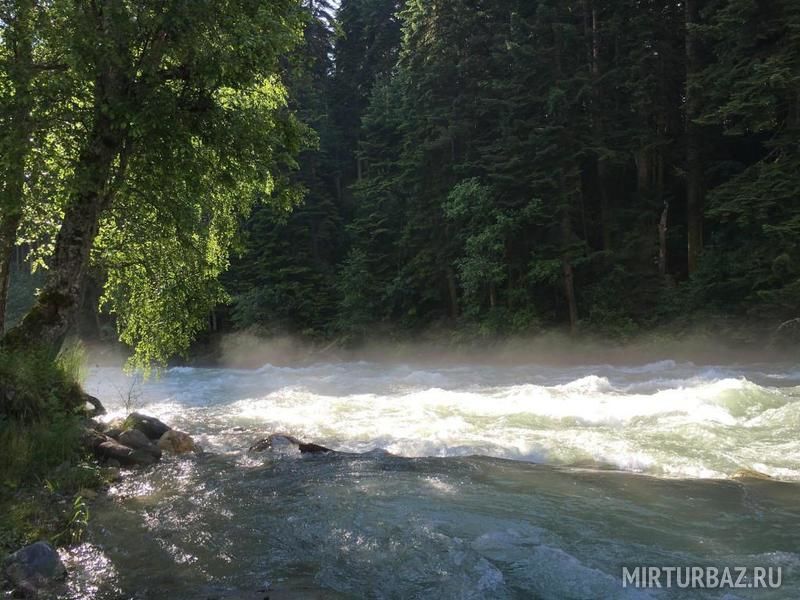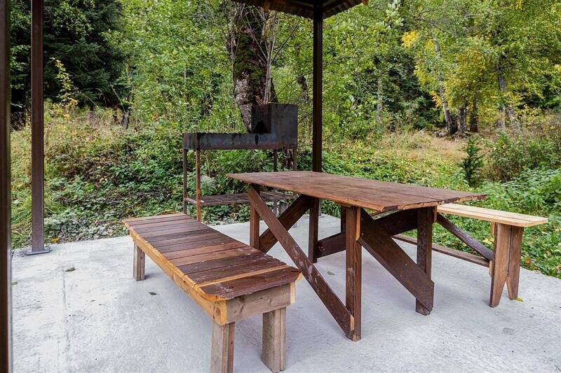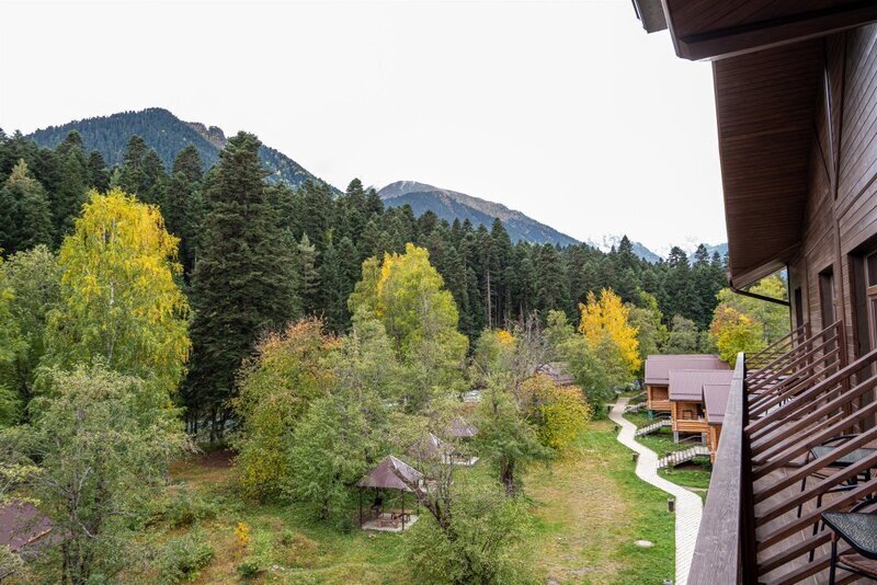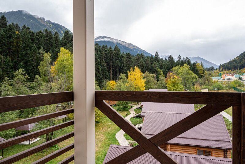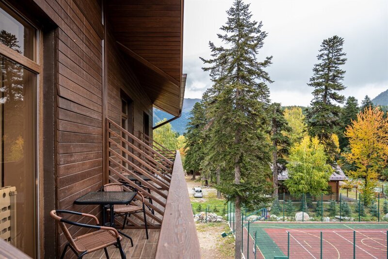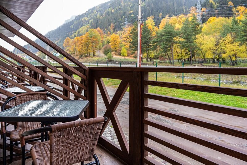 В каждом номере есть все необходимое для комфортного отдыха: холодильник, чайный набор и электрический чайник, телевизор, шкаф для одежды, письменный стол, бра рядом с кроватью, которые удобно использовать для чтения, зеркало, а также большие террасы со столиком и стульями в каждом номере. Только представьте, каково это – провожать закат, сидя на терассе и слушая шум горной реки!