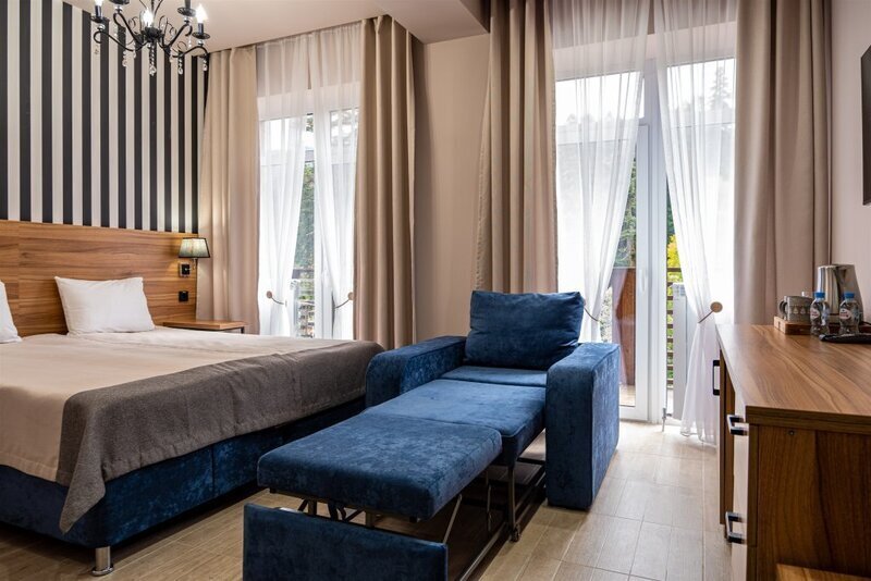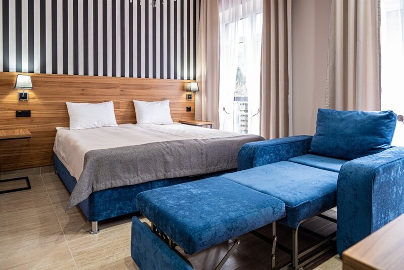 Номер категории «Полулюкс» идеально подходит для 2-3 гостей. В нем имеется двуспальная кровать и удобное раскладное кресло.