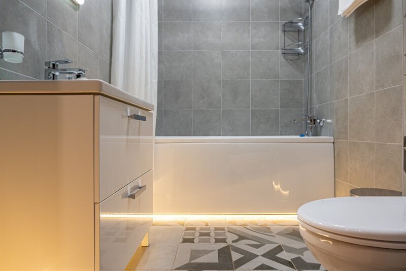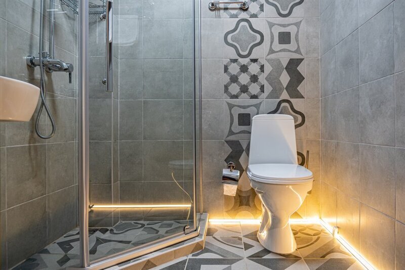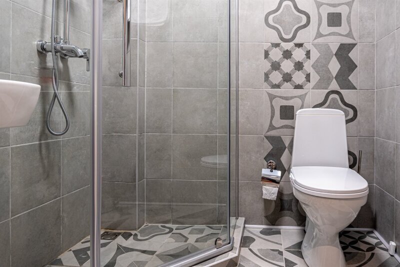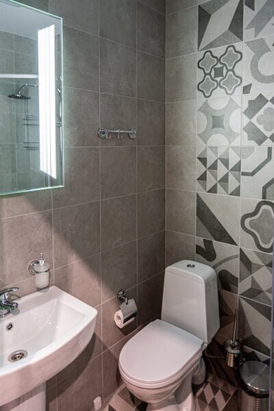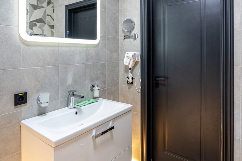 В ванной комнате вас ждёт тропический душ, белоснежные полотенца, зеркало и качественный свет, который поможет насладиться банными процедурами.