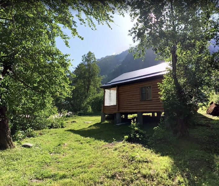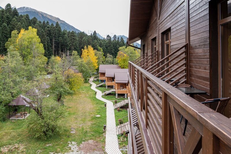 Это экологичные деревянные срубы на берегу живописнейшей горной реки Псыш. Номера оборудованы всем необходимым для комфортного проживания.