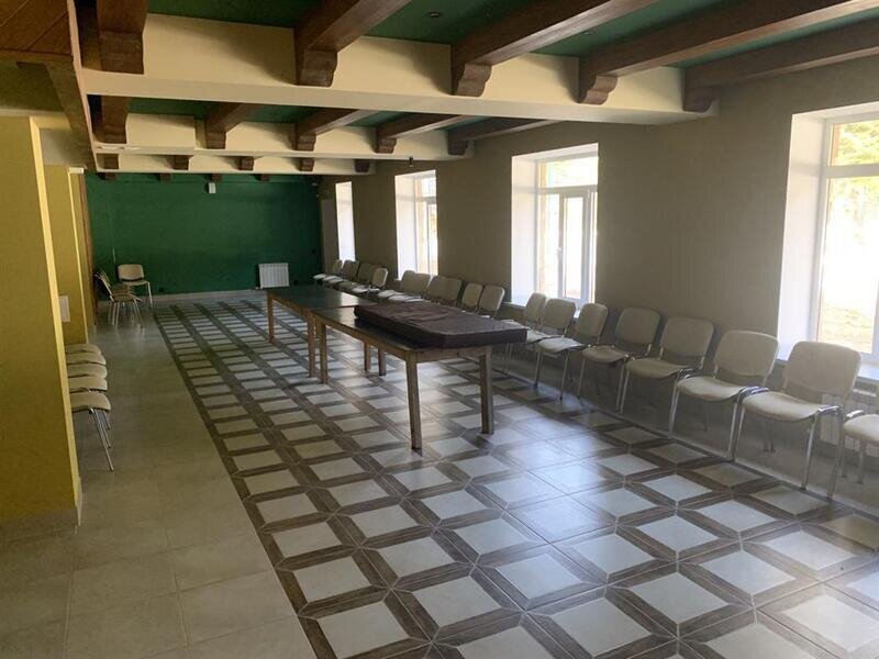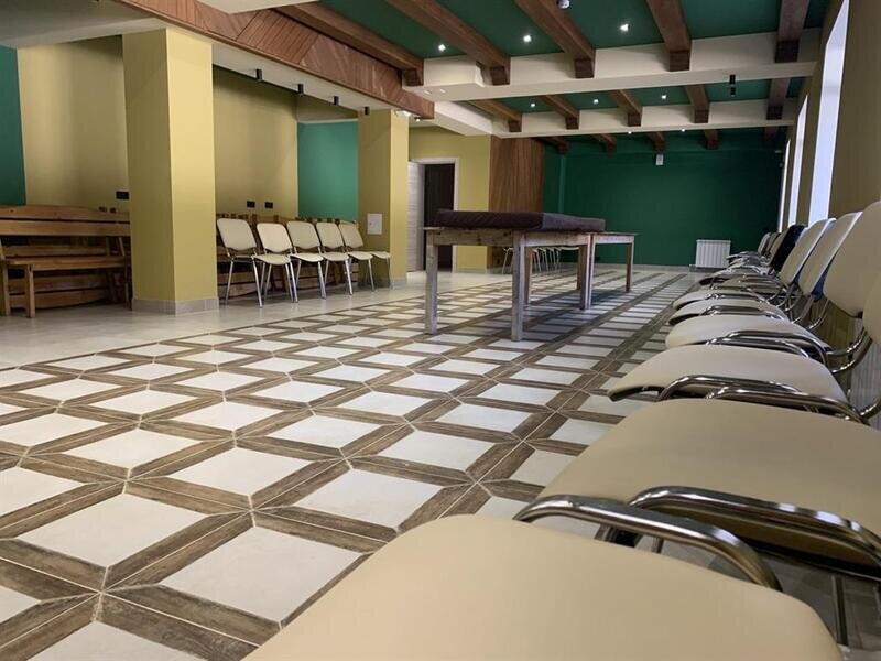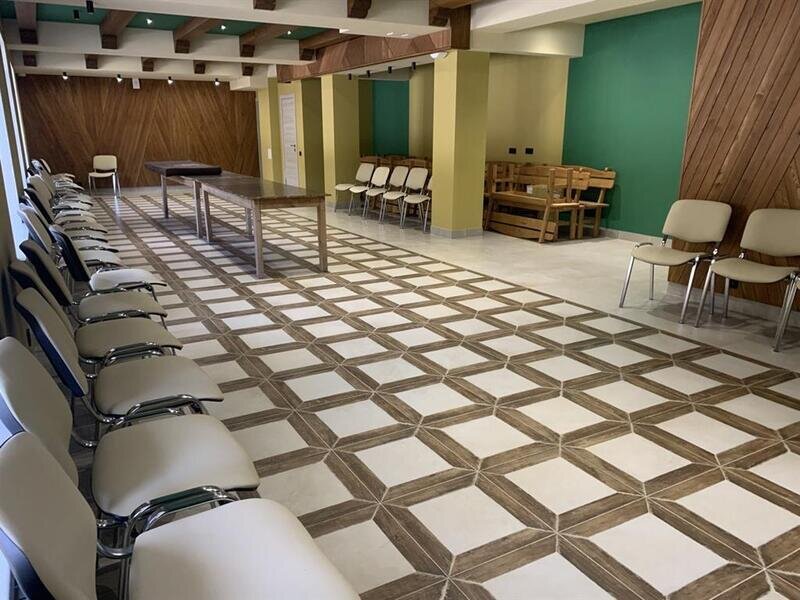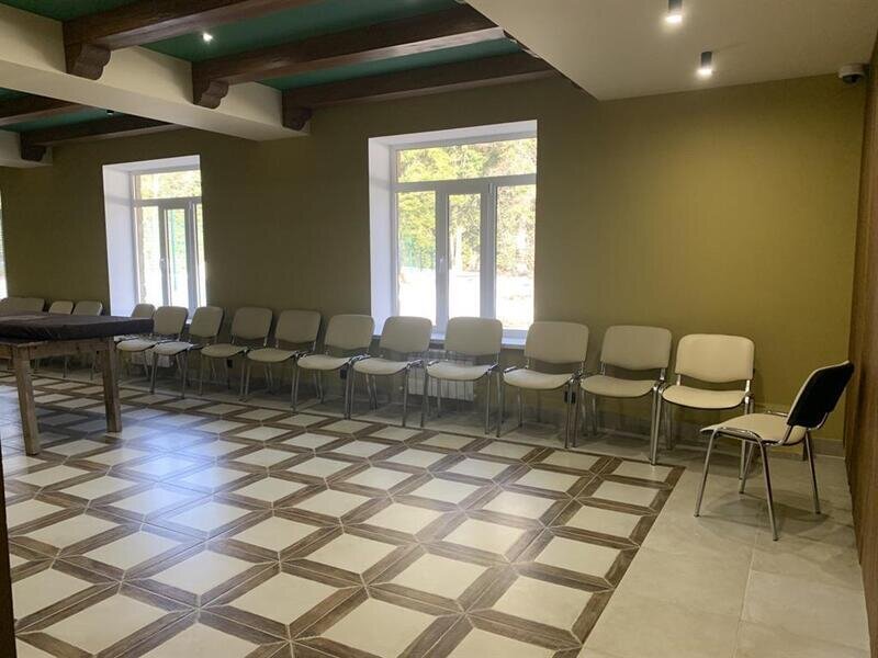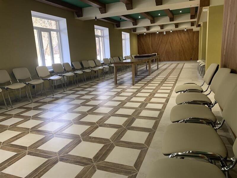 Конференц-зал вместимостью до 60 человек. В нем можно проводить мероприятия, бизнес-тренинги, застолья, дни рождения, играть в настольные игры, а также заниматься йогой или другими фитнес практиками, так как он оборудован специальным ковровым покрытием.