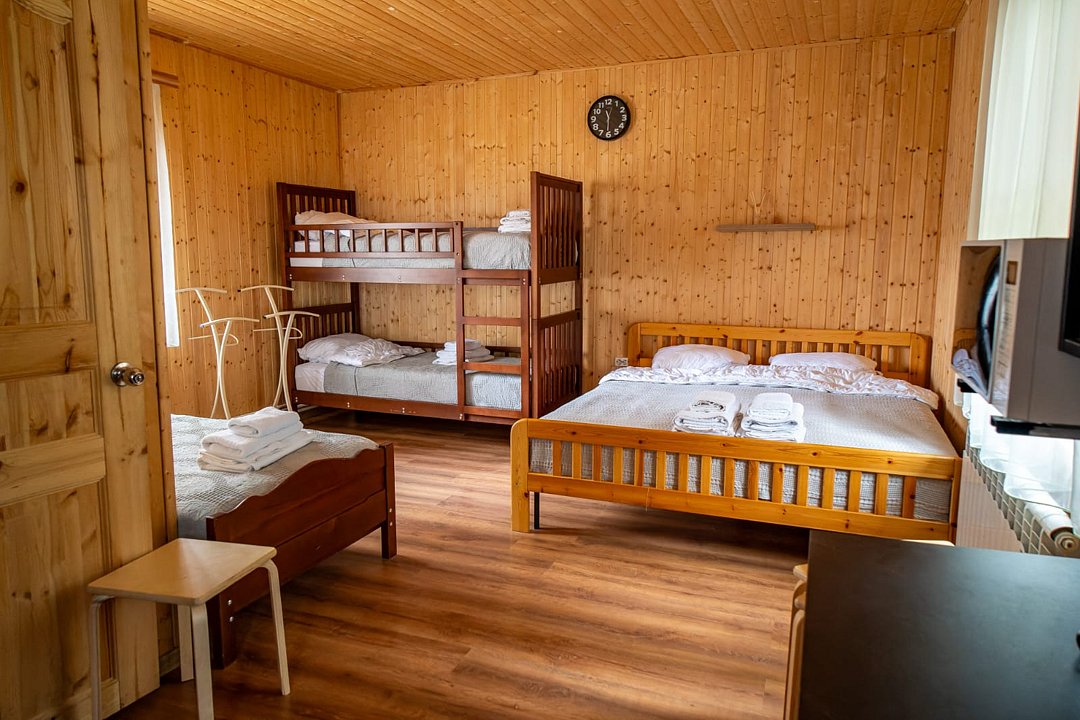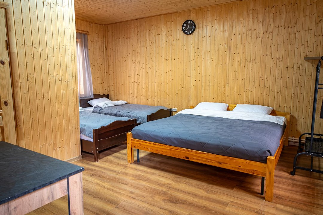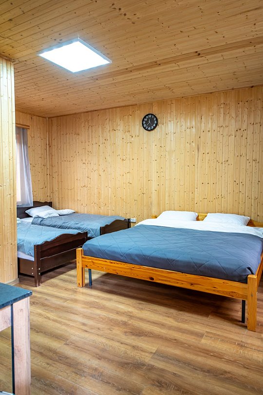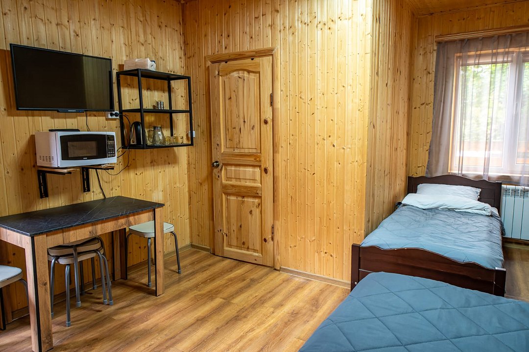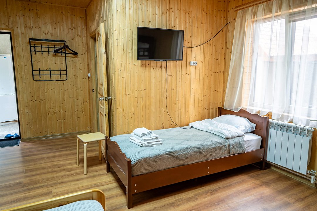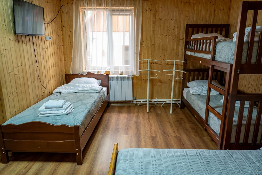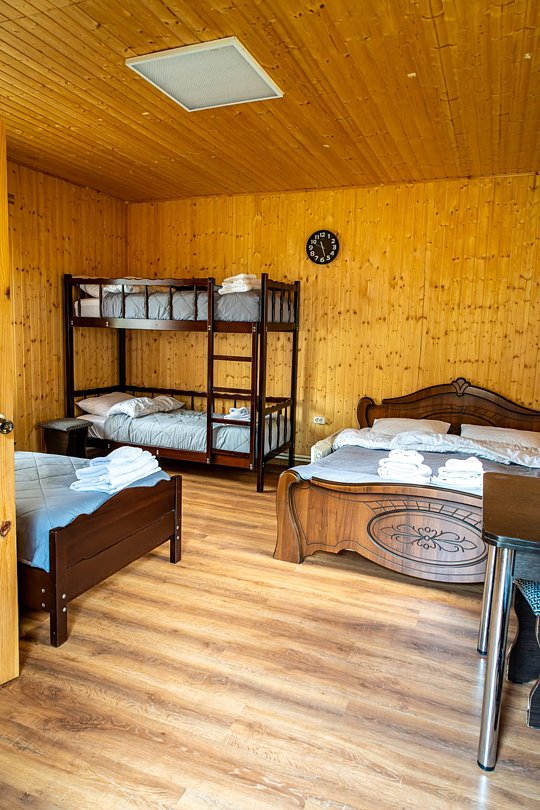 Отличное местоположение обещает шикарный вид из окон номеров и множество возможностей активного отдыха. Большая территория для парковки и игр с детьми, три беседки с мангалами, также по территории течет речка с талой водой, есть форелевый пруд для рыбалки.