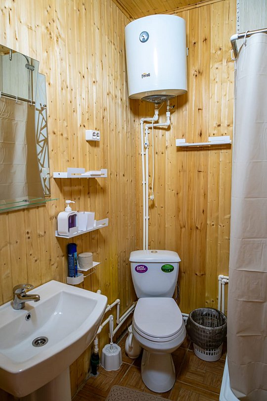 Ванная комната оснащена всеми необходимыми туалетно-косметическими принадлежностями.