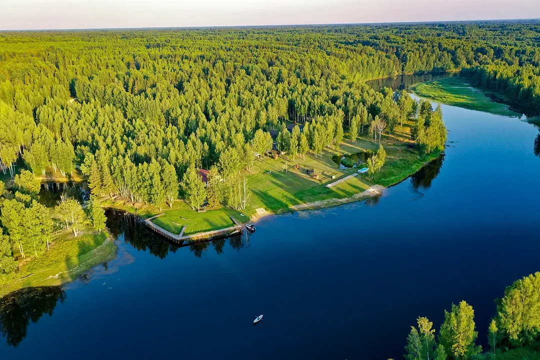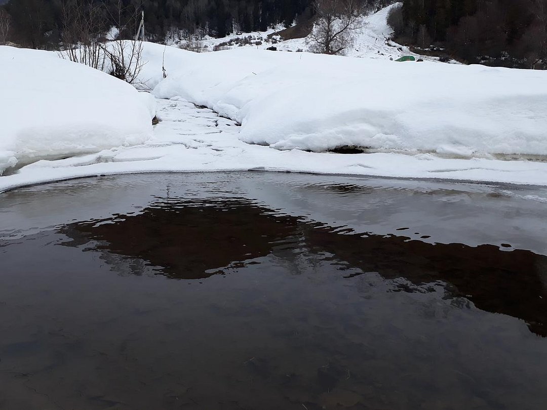 По территории течет речка с талой водой, есть форелевый пруд для рыбалки.