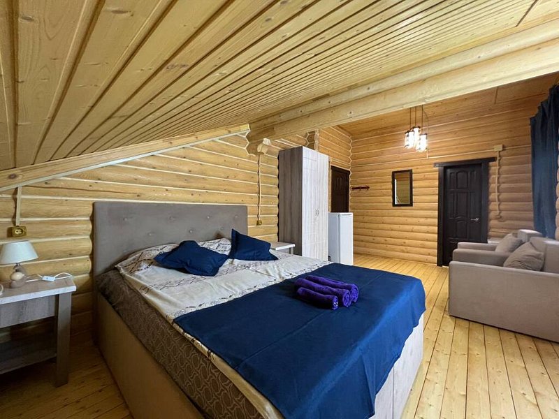 На территории 1 гектар с бесплатной парковкой и детской площадкой, расположились уютные деревянные домики с номерами различных категорий.