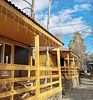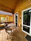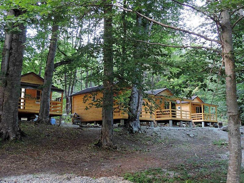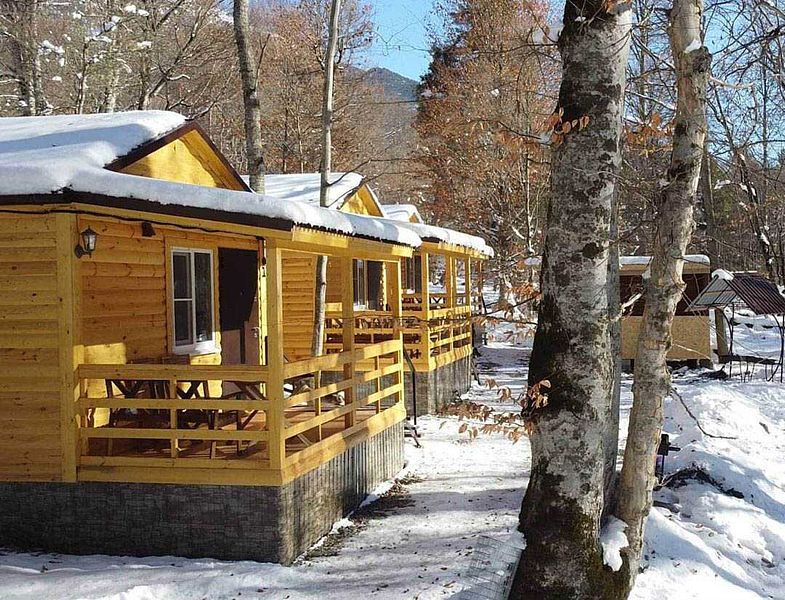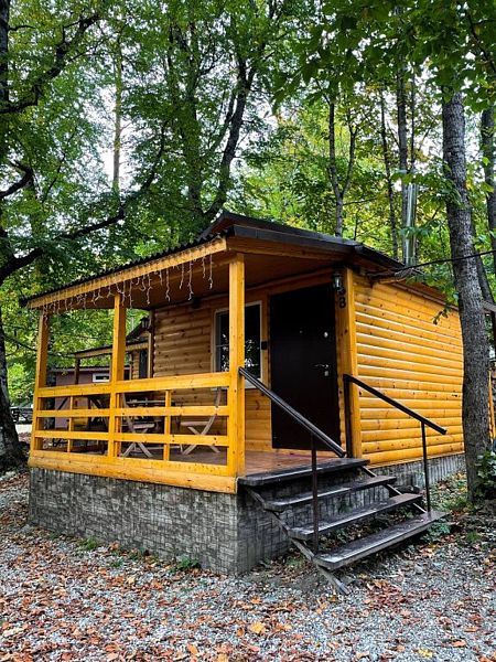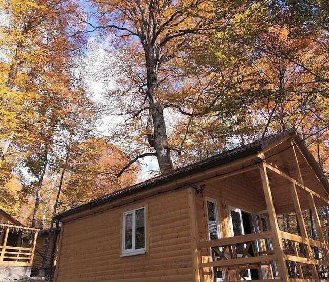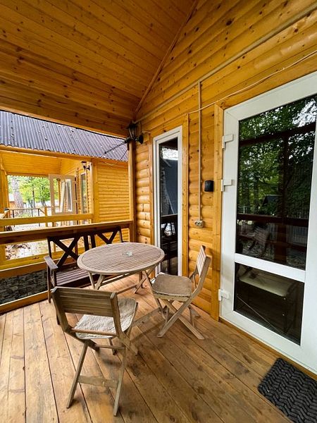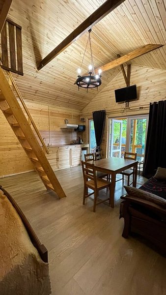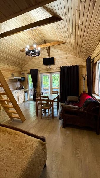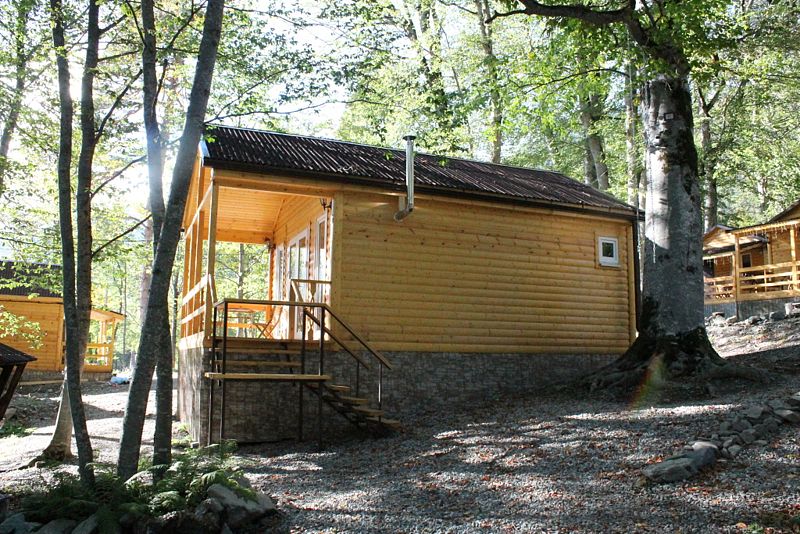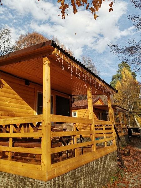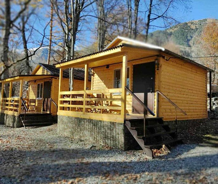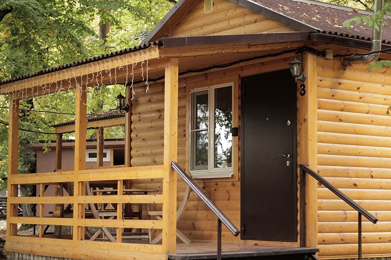 На живописной территории разместились деревянные дома различной вместимости, каждый из которых оснащён тёплыми полами, оборудованной кухней, ванной комнатой и собственной террасой, с которой можно любоваться окружающей природой, отдыхая на свежем воздухе.
