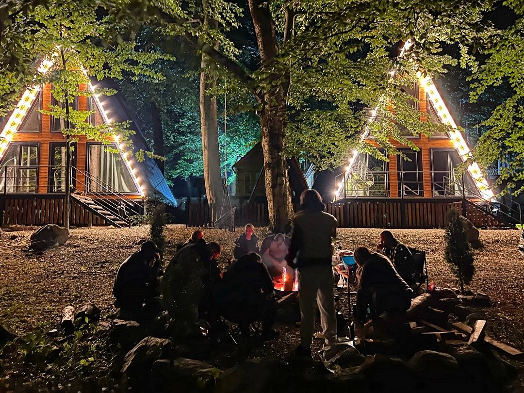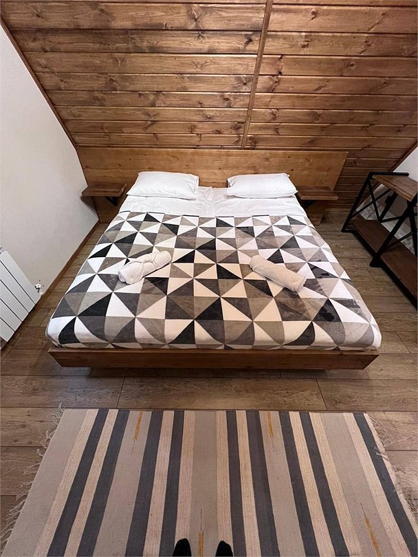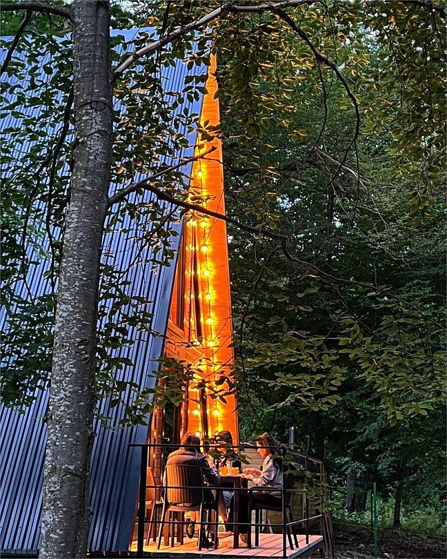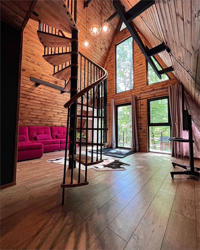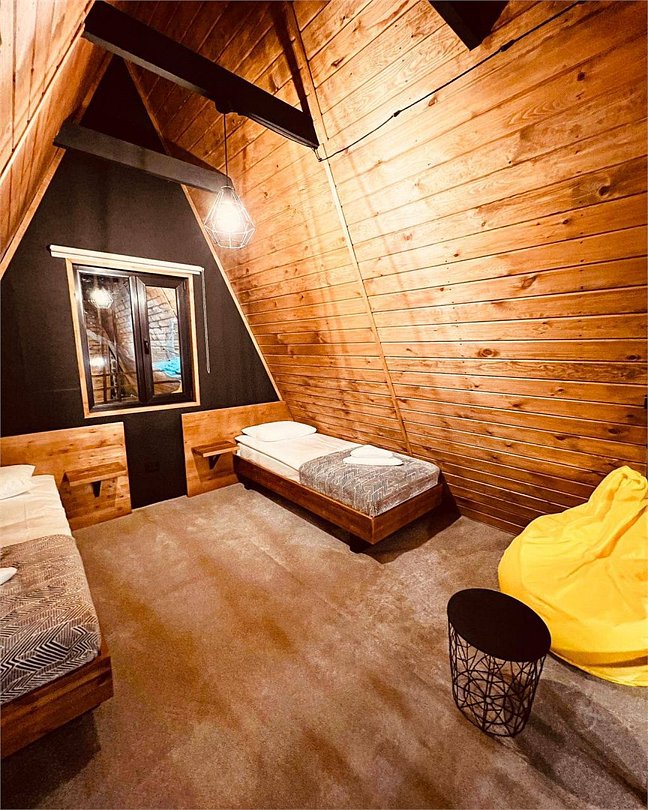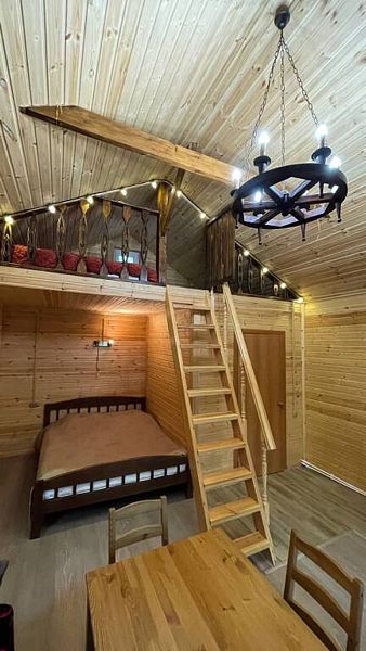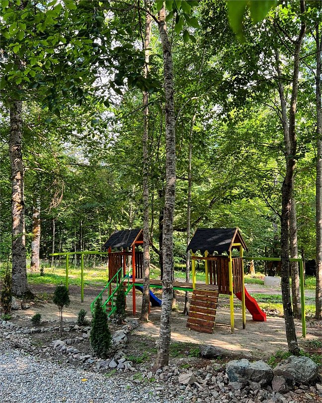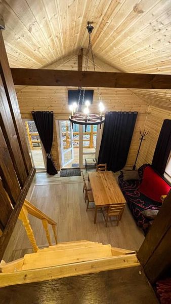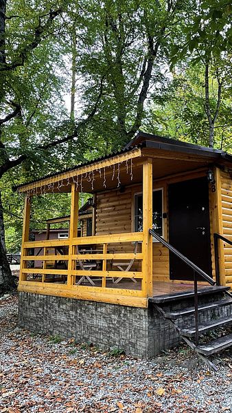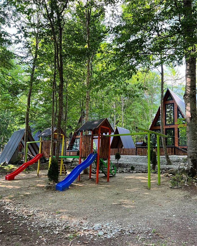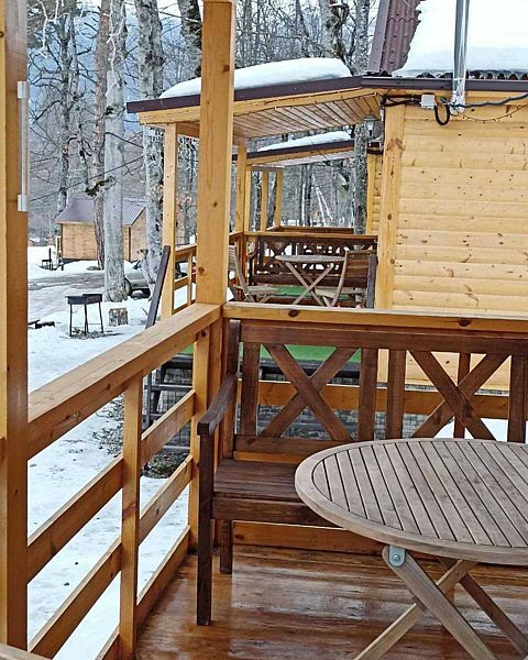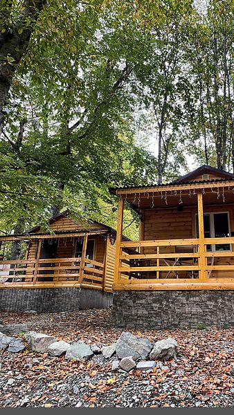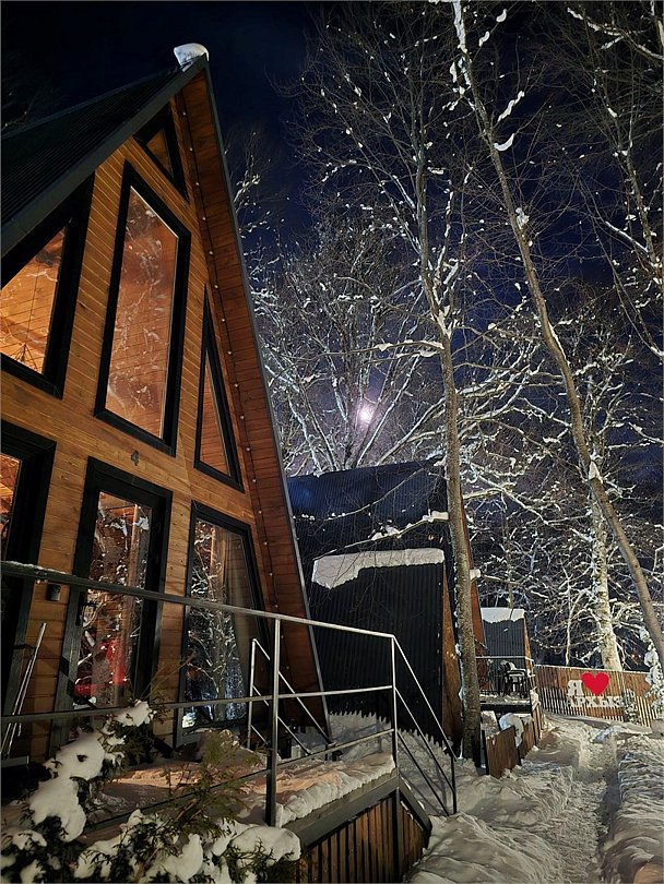 База отдыха «Шалаш Архыз» приглашает в сказочный уголок высоких гор, свежего воздуха и пушистого снега Экодома в стиле А-фрейм с двумя этажами (!не путать с маленькими А-фрейм!), верандой и зоной барбекю. Количество - 5 домов Площадь дома - 72кв. м Количество мест - 4+2 допместа Территория - 0.5 га Что на территории - детская площадка, мангальные зоны и беседки возле каждого дома, качели, общие зоны отдыха, кухня-столовая, речка New❗️ Баня на дровах! Расстояние до центра - 4-5 мин на машине, 10 мин пешком ❌Запреты - спиртное, курение в домах, животныеУслуги и удобства