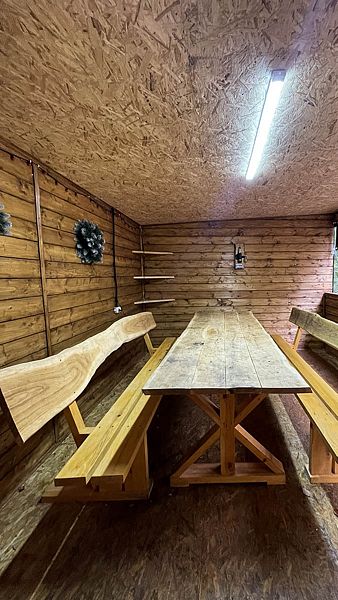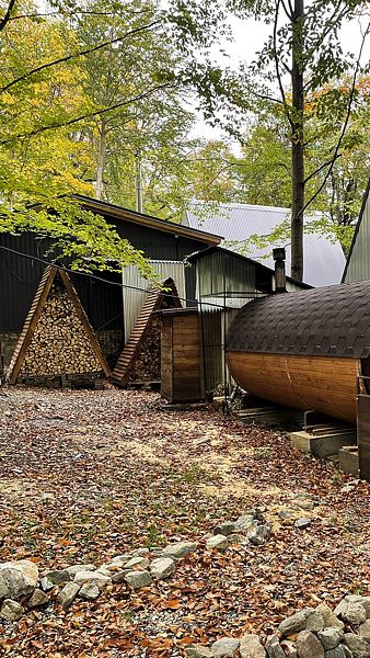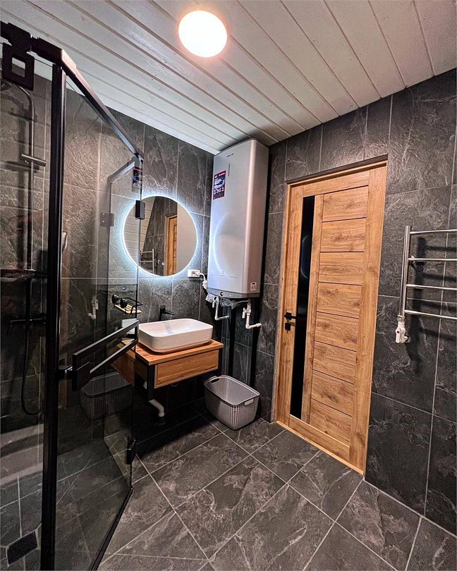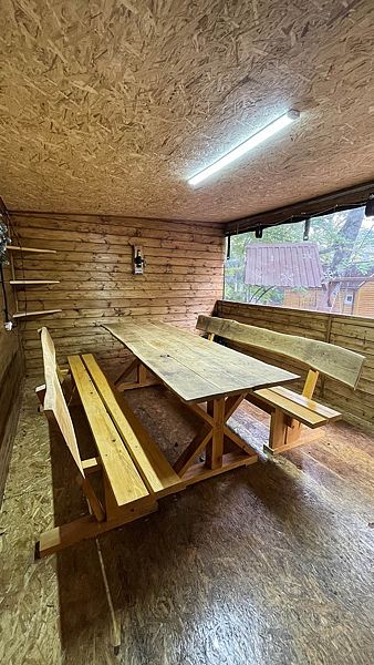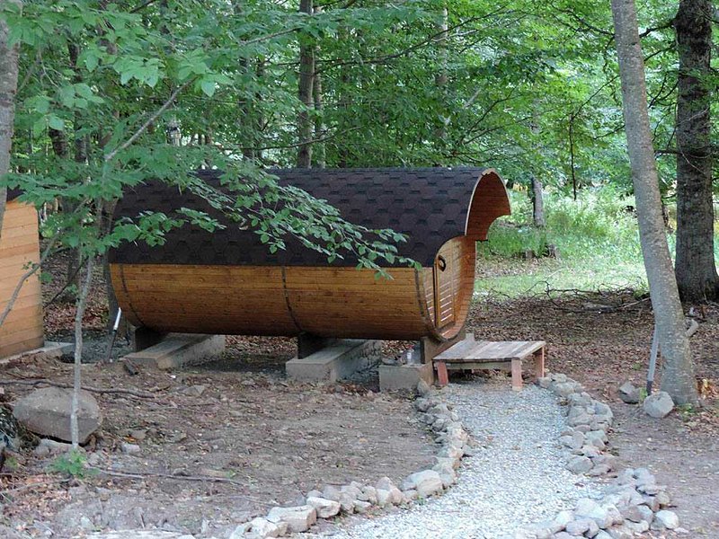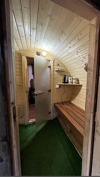 Также на территории есть мангальная зона, закрытая беседка, парковка и баня на дровах, чтобы расслабиться и восстановить силы после насыщенного дня.