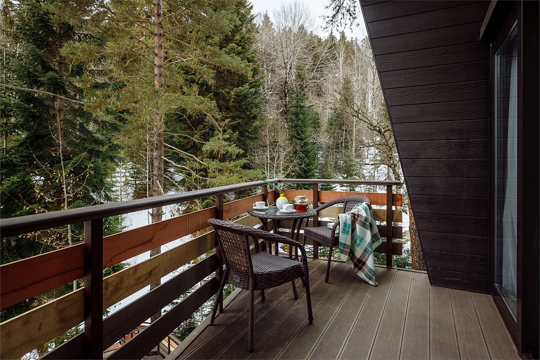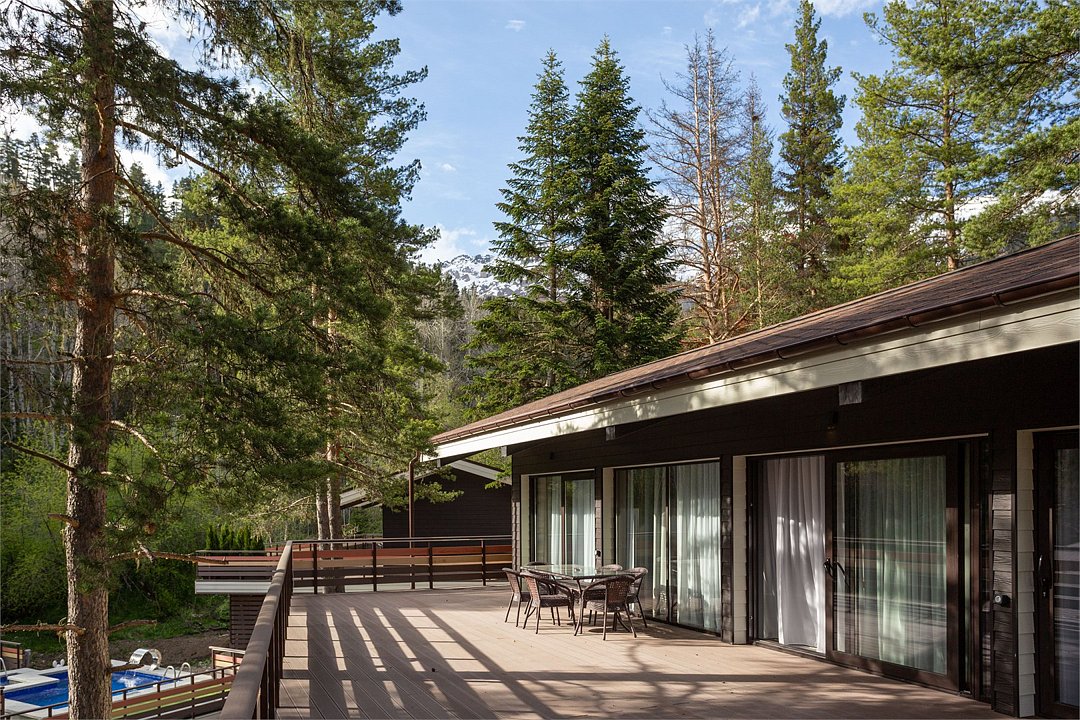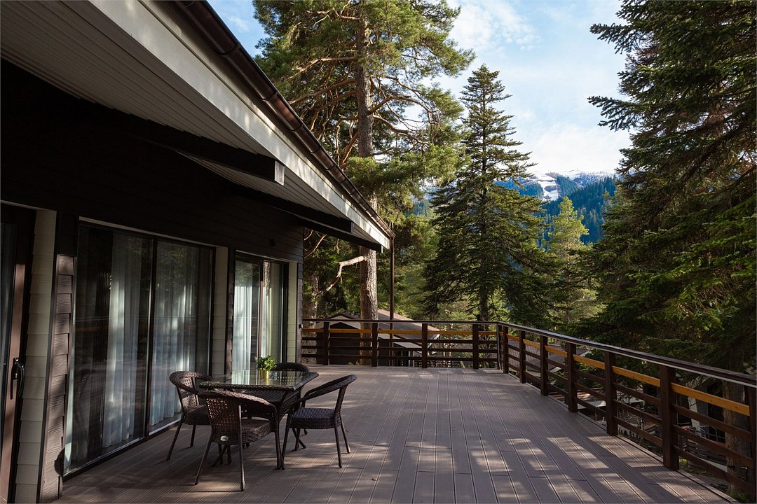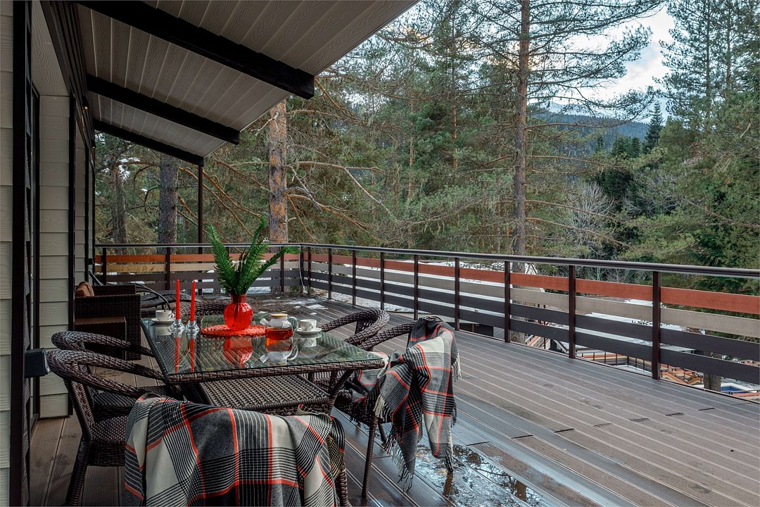 - современная приватная лаунж зона с изумительным видом на горы и сосновый лес