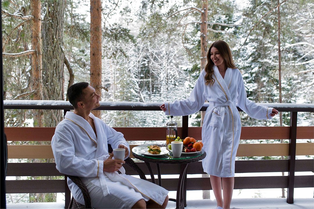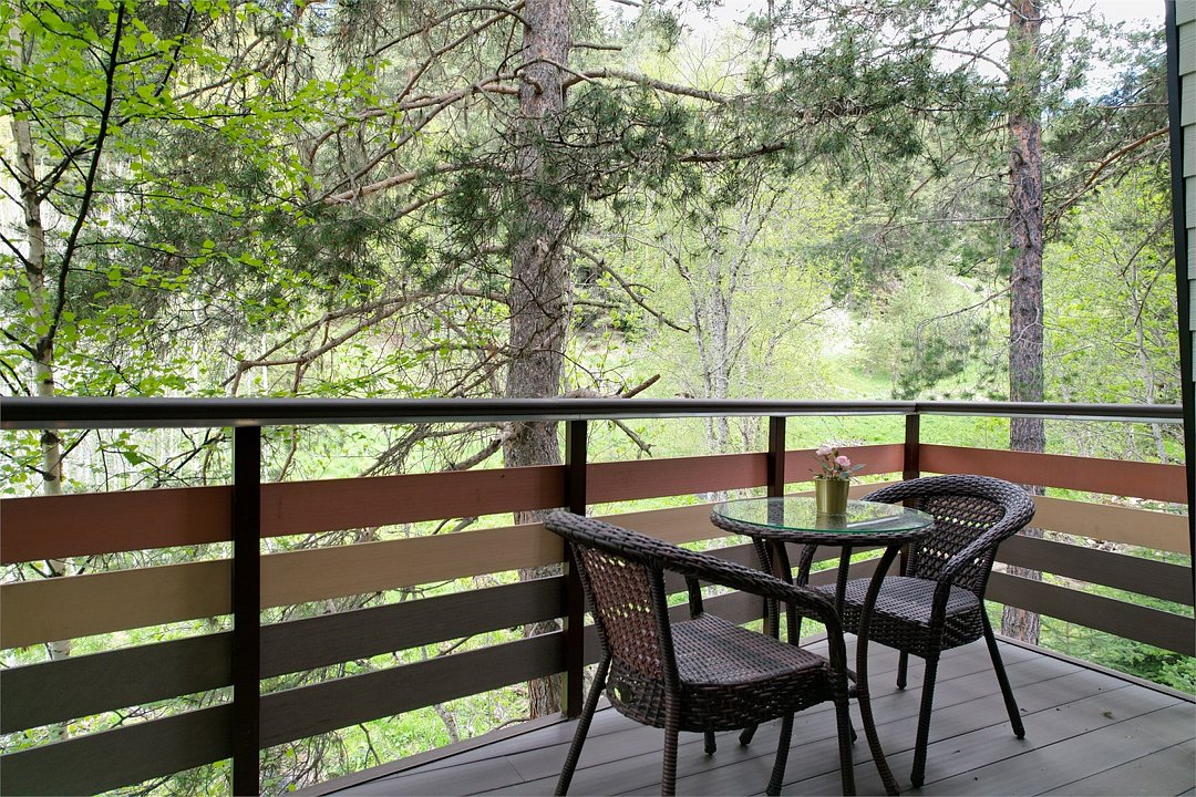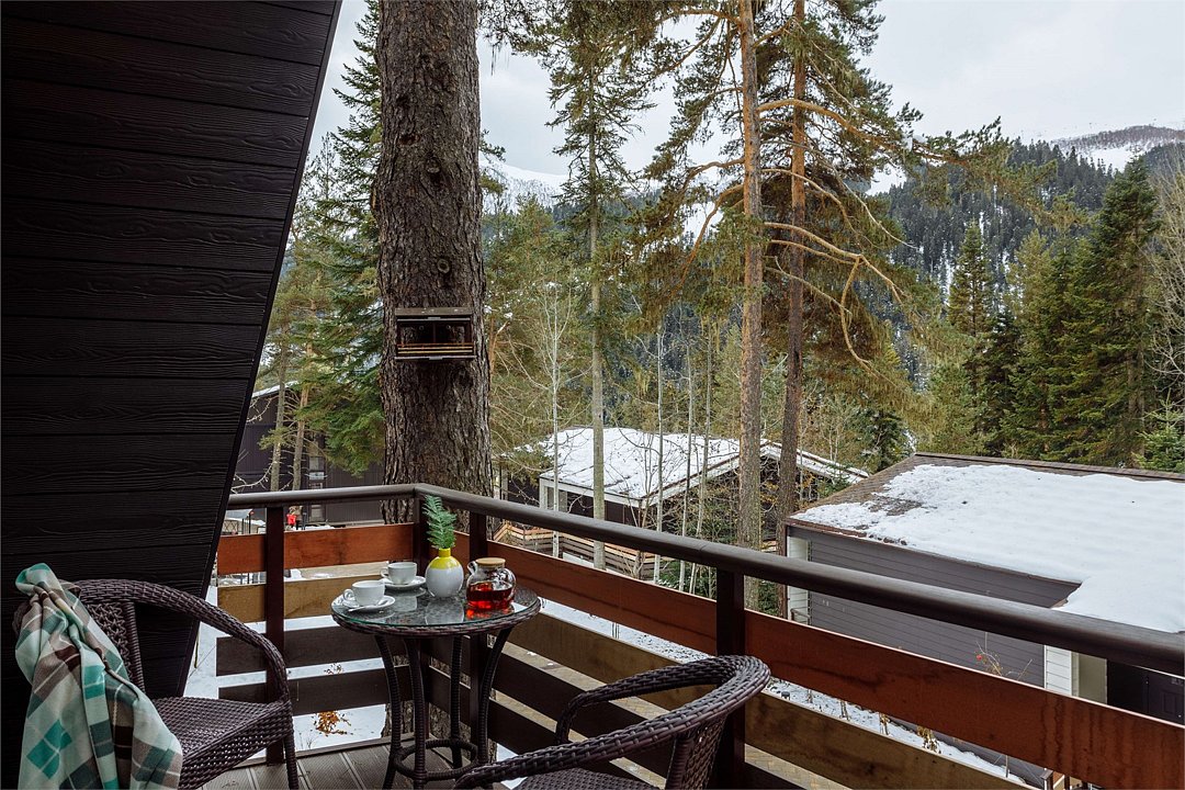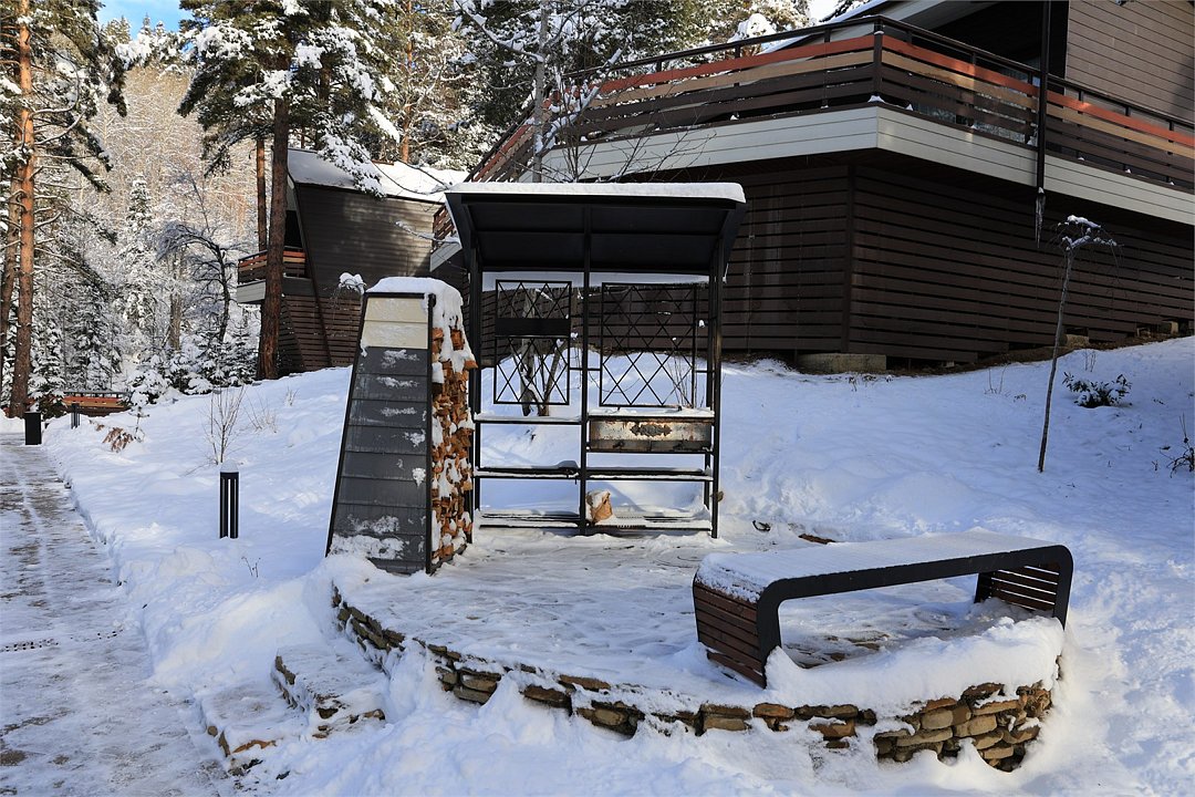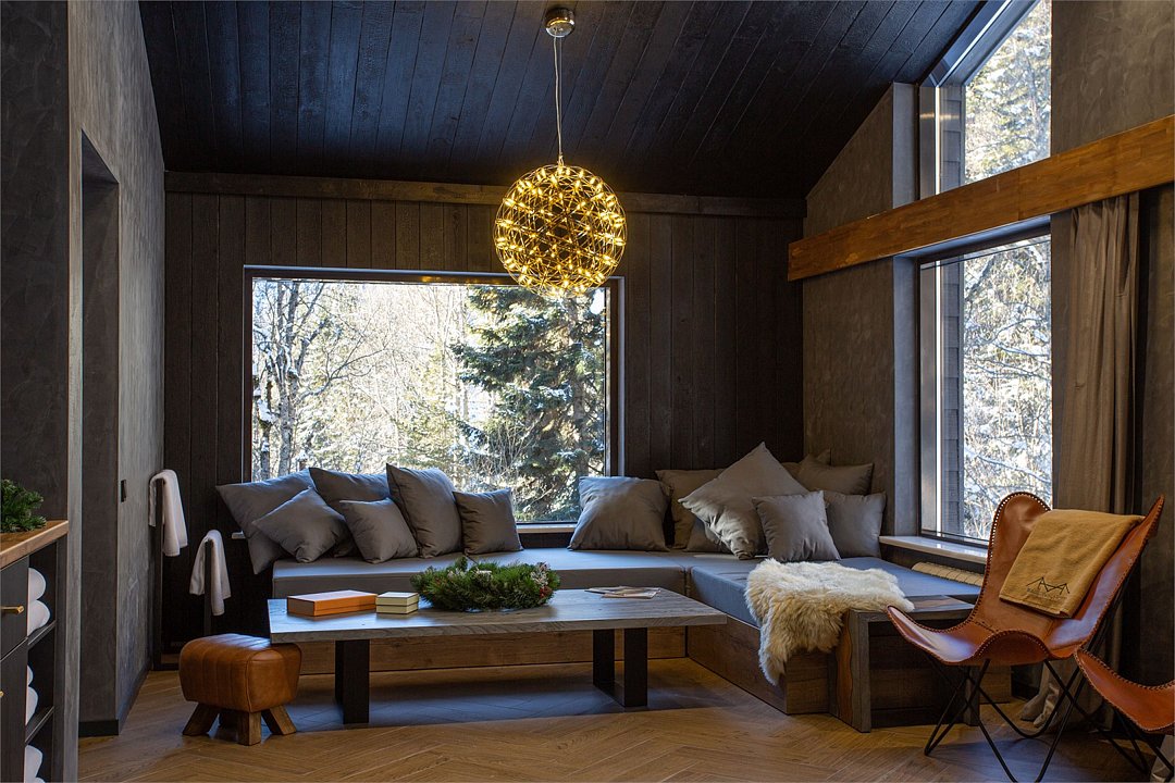 - современная приватная лаунж зона с изумительным видом на горы и сосновый лес