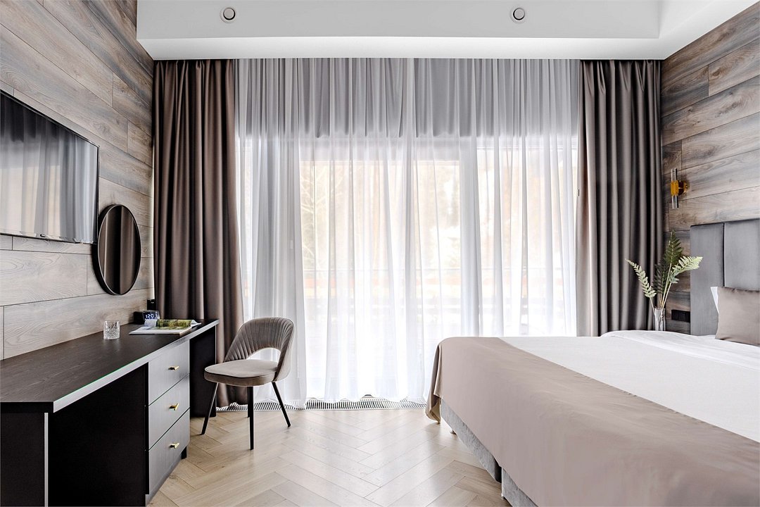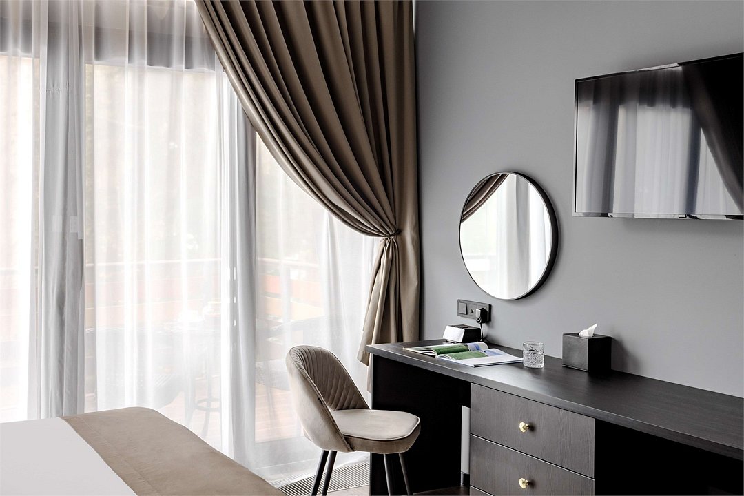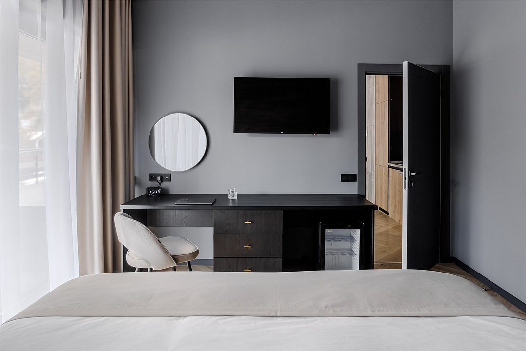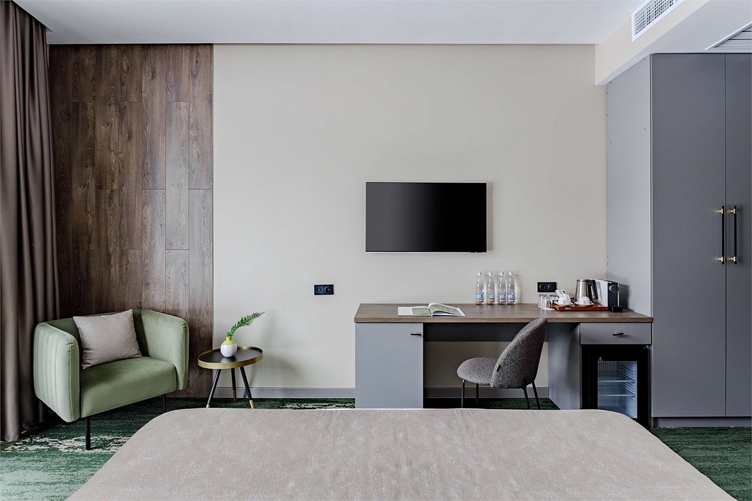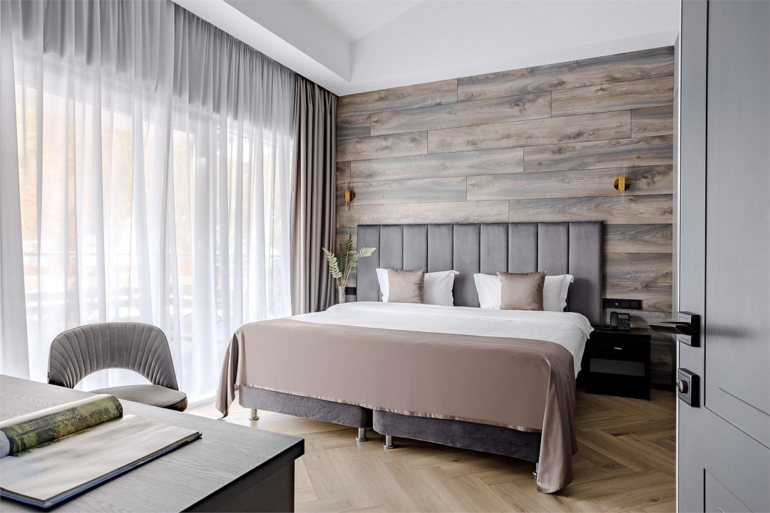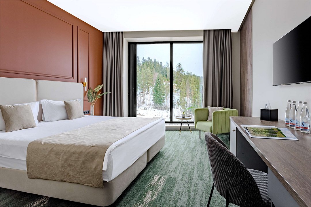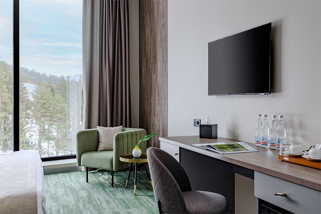 Современный и просторный номер Standart Plus подарит гостям комфорт и приятные эмоции. Из панорамных окон открывается изумительный вид на горы и горнолыжную трассу. Что включает в себя номер? • двуспальная кровать или две односпальные кровати с ортопедическим матрасом • ванная комната с душем • диван-кровать • телевизор SMART TV • высокоскоростной WiFi • электронный cейф • халат, тапочки, набор полотенец • блекаут-шторы • кофемашина • чайная станция • бутилированная минеральная вода • рабочий стол • подогрев полов в ванной комнате • система вентиляции воздуха • весы • фен Площадь каждого из 4 номеров - от 31 до 37 кв.м. Номера расположены в Главном Корпусе гостиничного комплекса Mairi Park Hotel. В номера Standart и Standard Plus разрешено заселение детей от 7 лет. Гостиничный комплекс имеет прямой выход на зеленую горнолыжную трассу Восток-1. Обращаем Ваше внимание на то, что размещение с питомцем в номерах Standart и Standart Plus не предусмотрено. Посещение SPA комплекса и бассейна не входит в стоимость проживания.Услуги и удобства